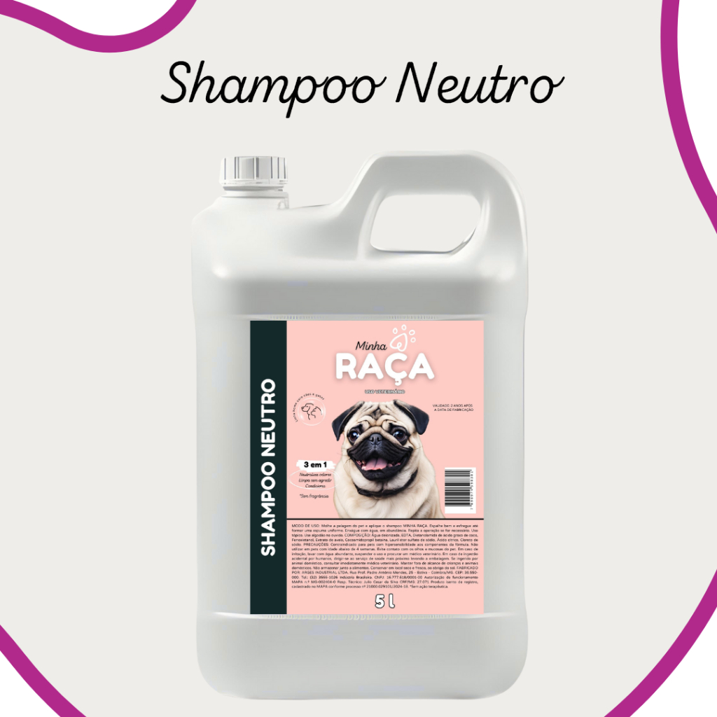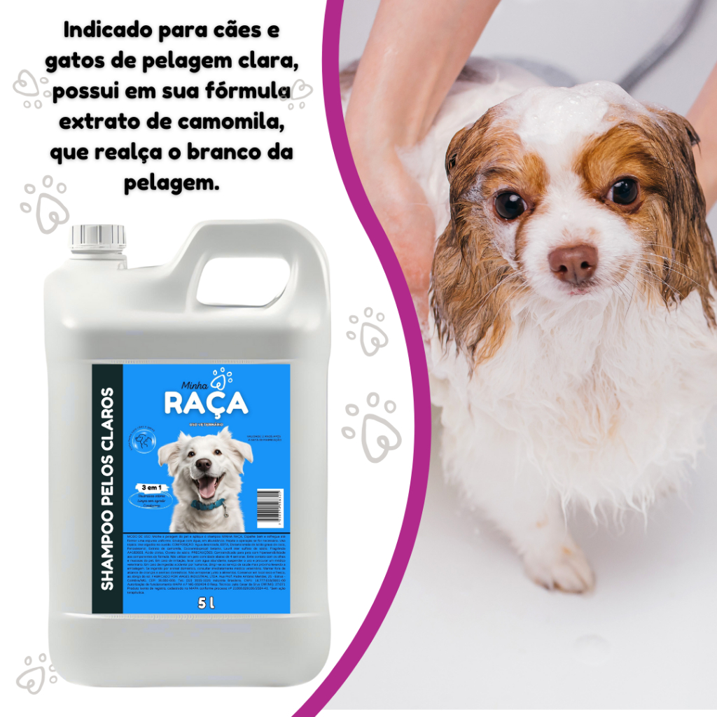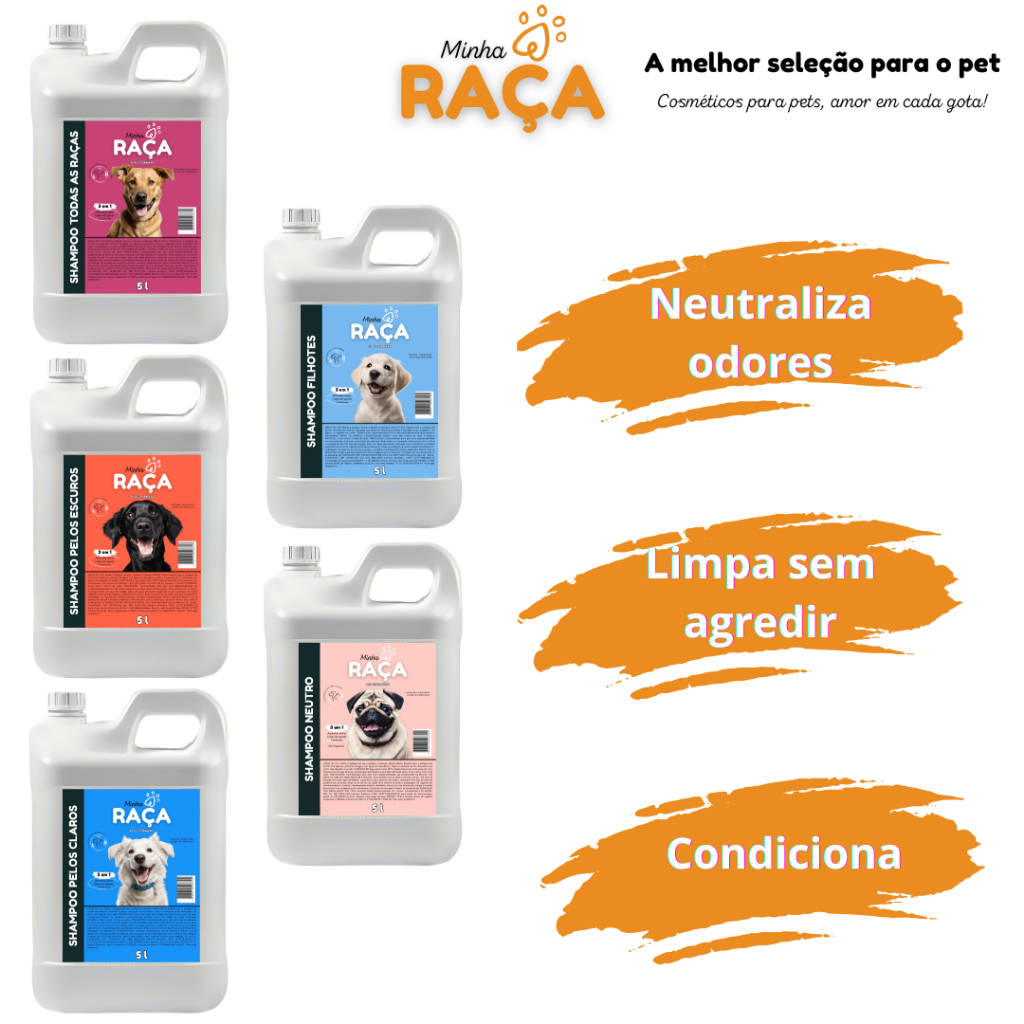 Shampoo Pet Todas as Raças, Neutro, Pelos Claros, Pelos Escuros e Filhote 5L Minha Raça