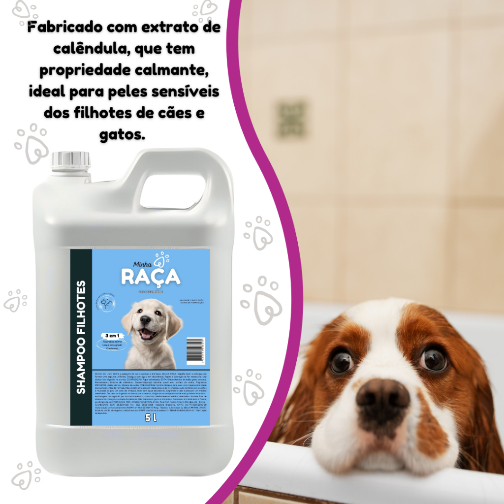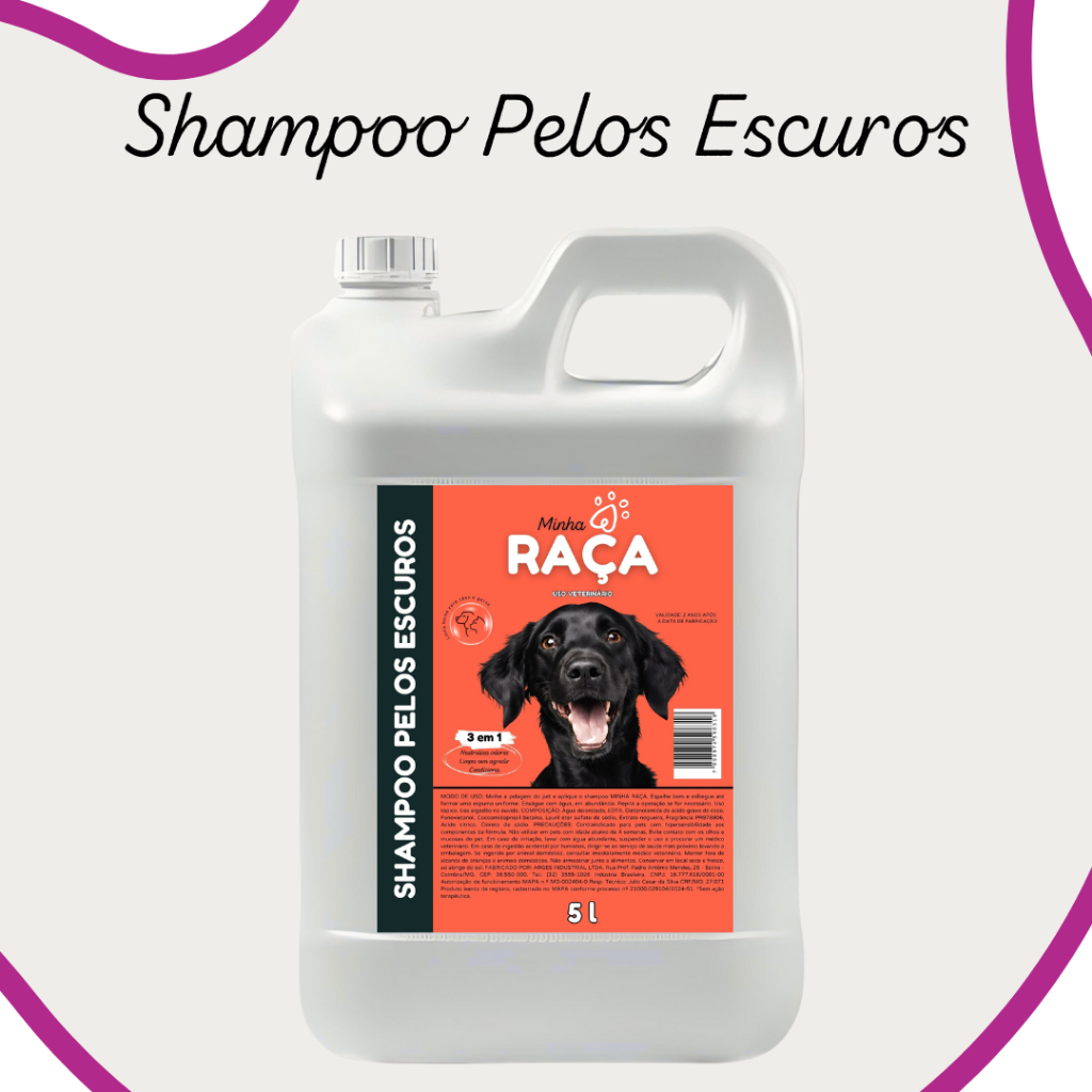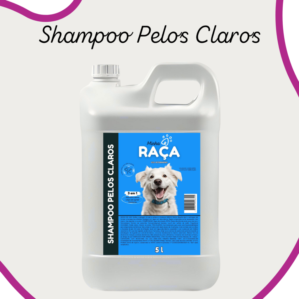 Shampoo Pet Todas as Raças, Neutro, Pelos Claros, Pelos Escuros e Filhote 5L Minha Raça