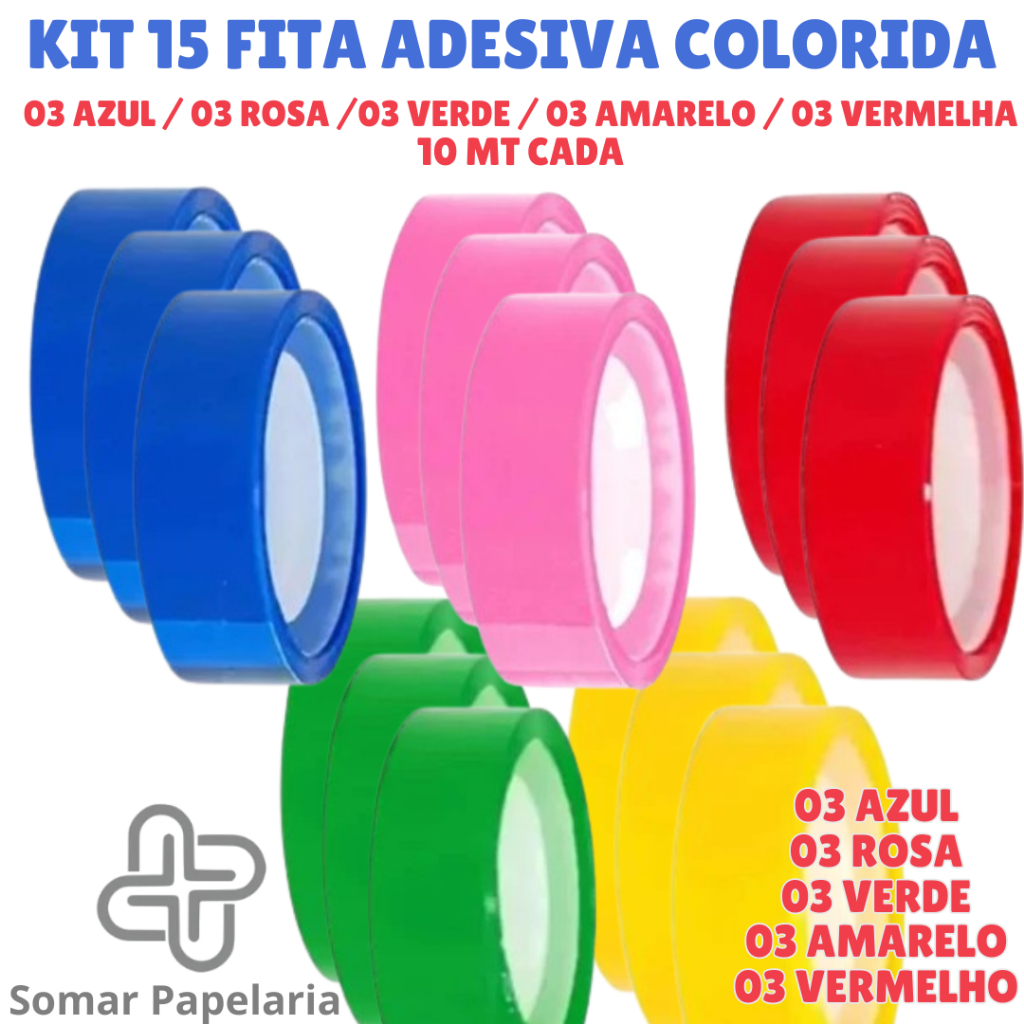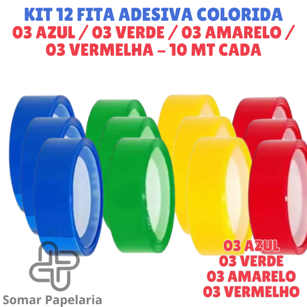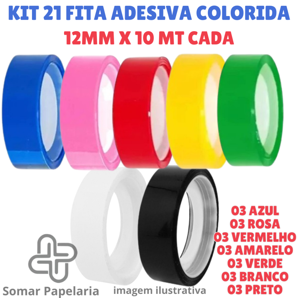 Fita Adesiva Colorida 12mm x 10m - Durex Colorido