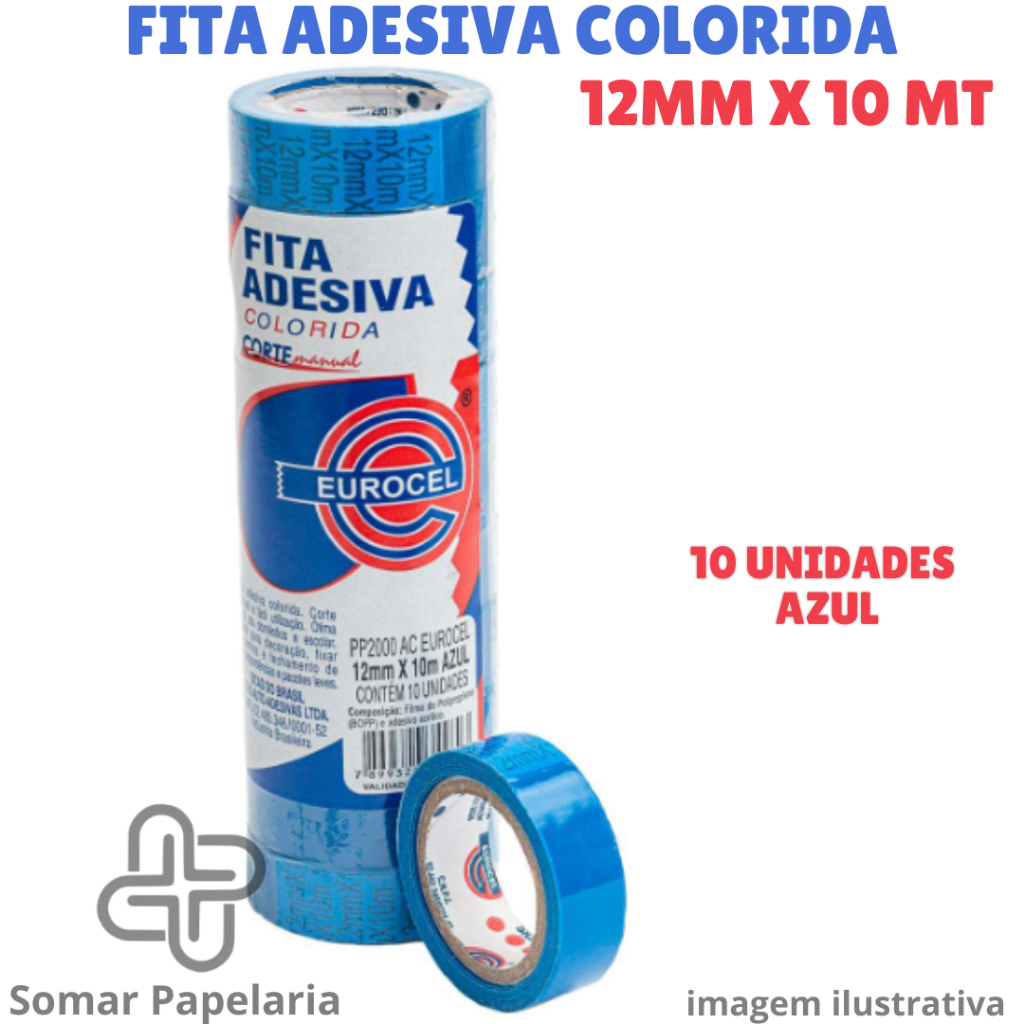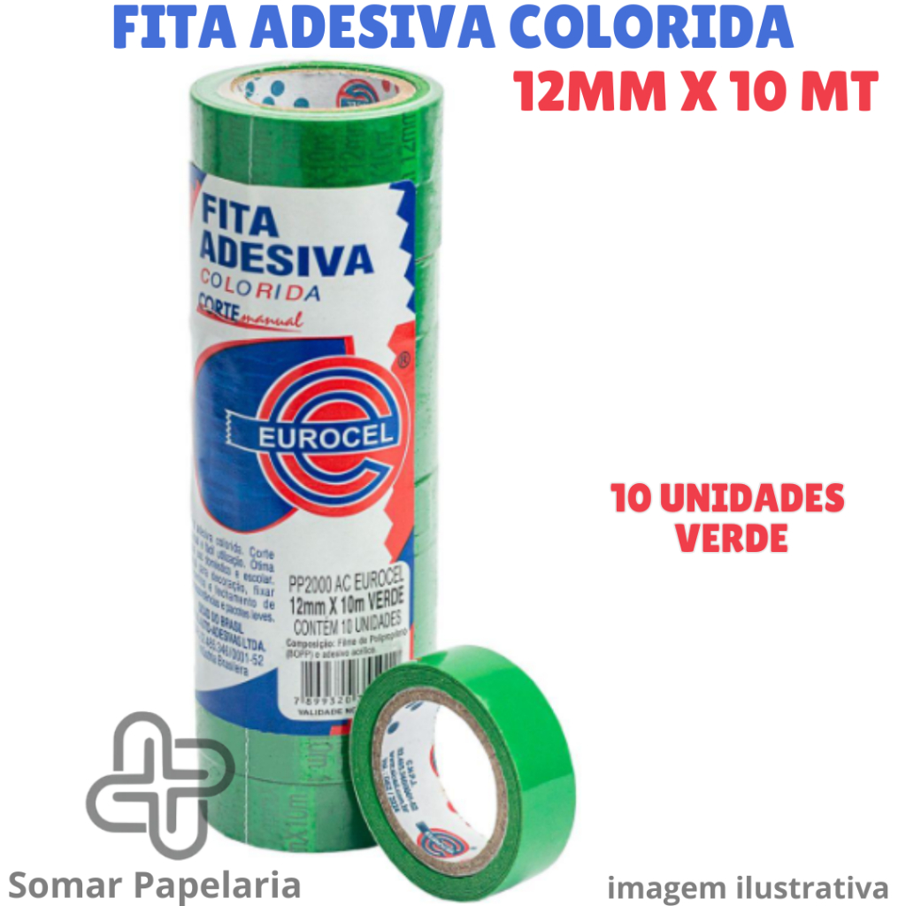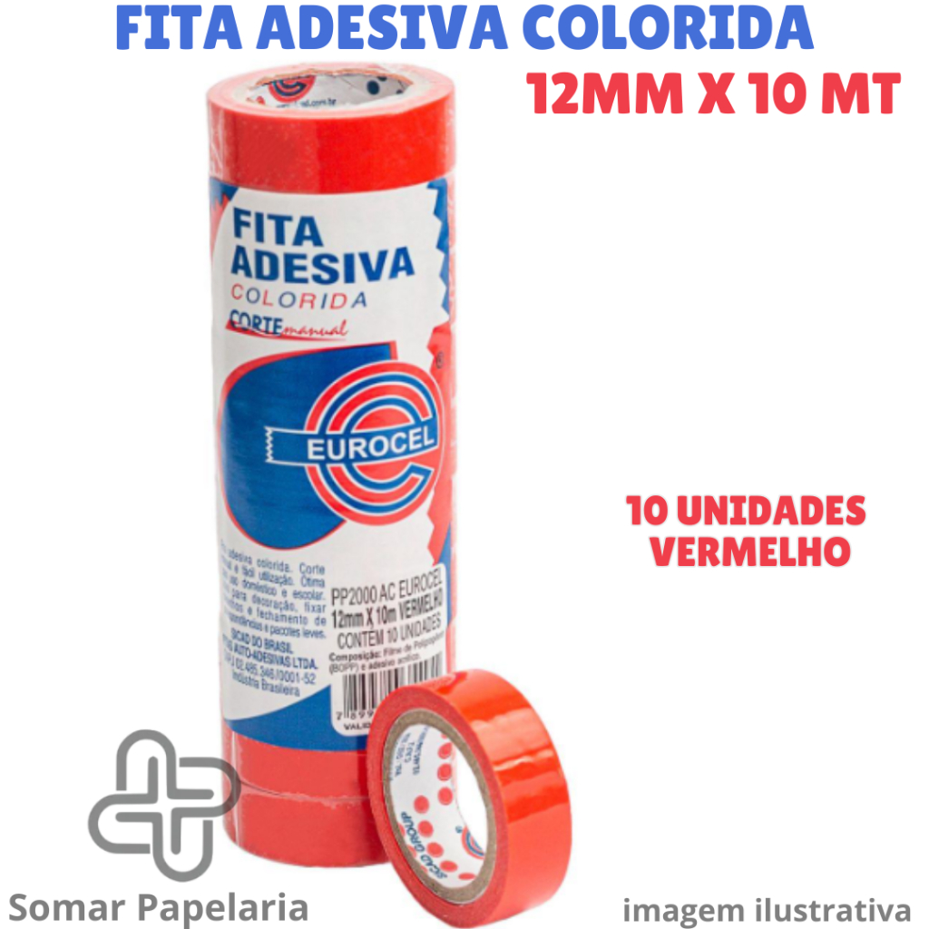 Fita Adesiva Colorida 12mm x 10m - Durex Colorido