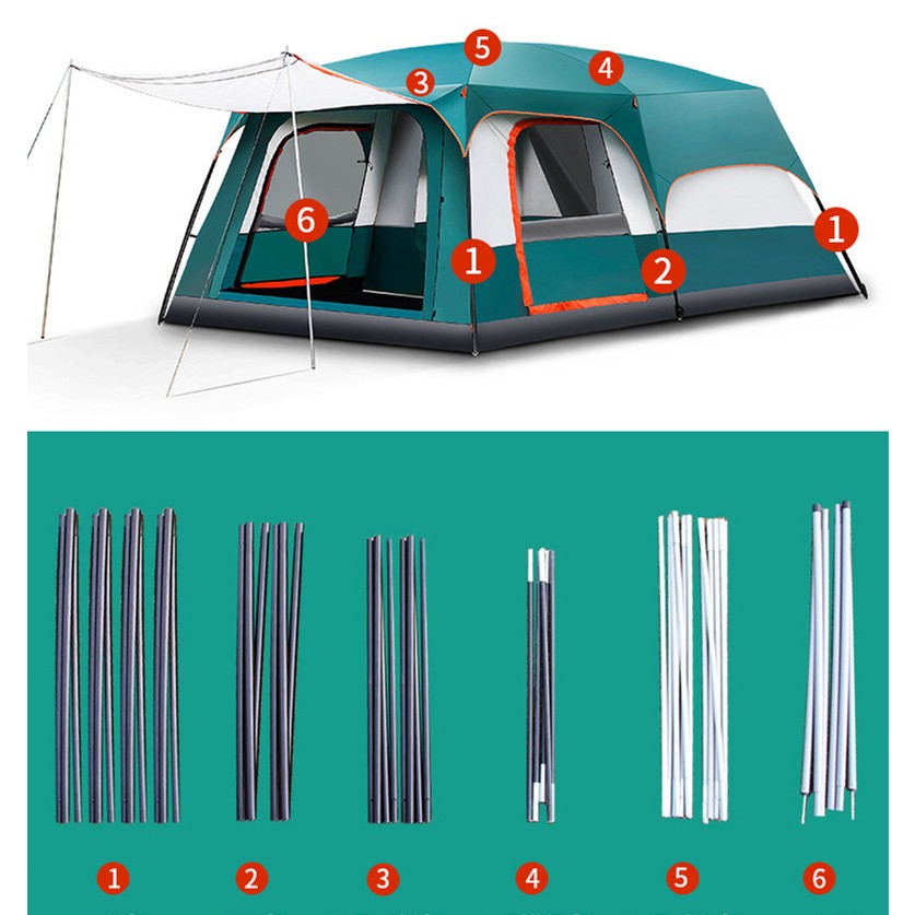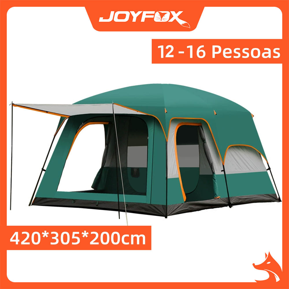 Barraca Grande JOYFOX Barraca Camping Acampamento 12 -16 Pessoas Varanda 420*305*200cm