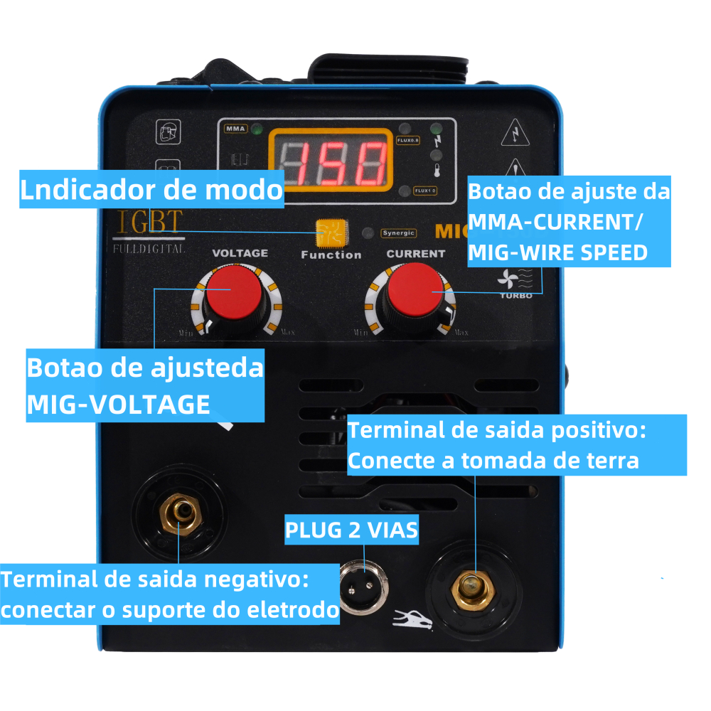 Máquina Solda Inversora Mig 150a Sem Gás 3 Em 1 Tig Lift Eletrodo 220v Frequência 50 Hz/60 Hz