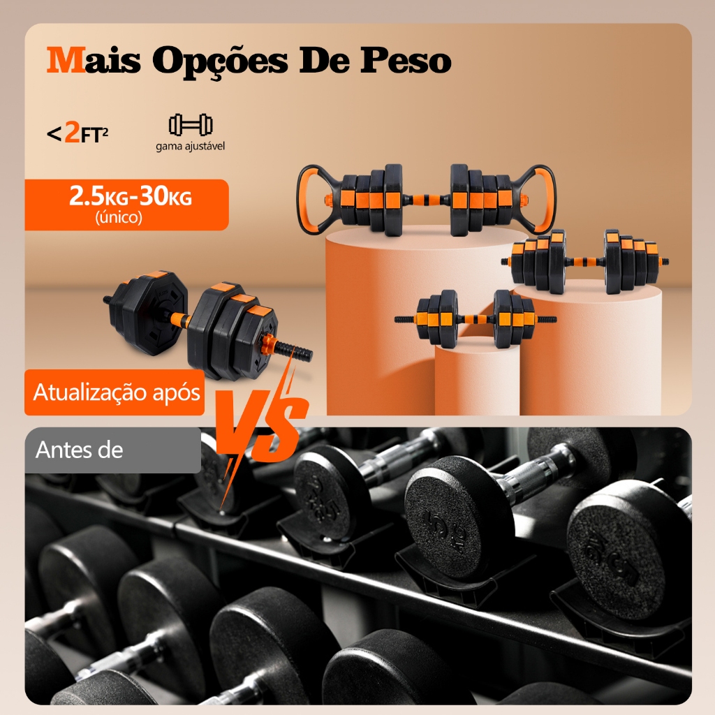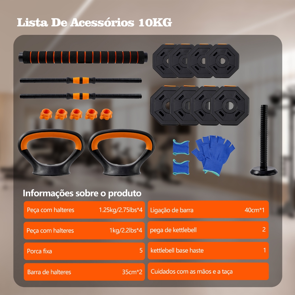 JOYFOX Alteres musculação Kit Halteres 6 Em 1 Musculação Até 20kg Ajustável Kettlebell Barra Anilha