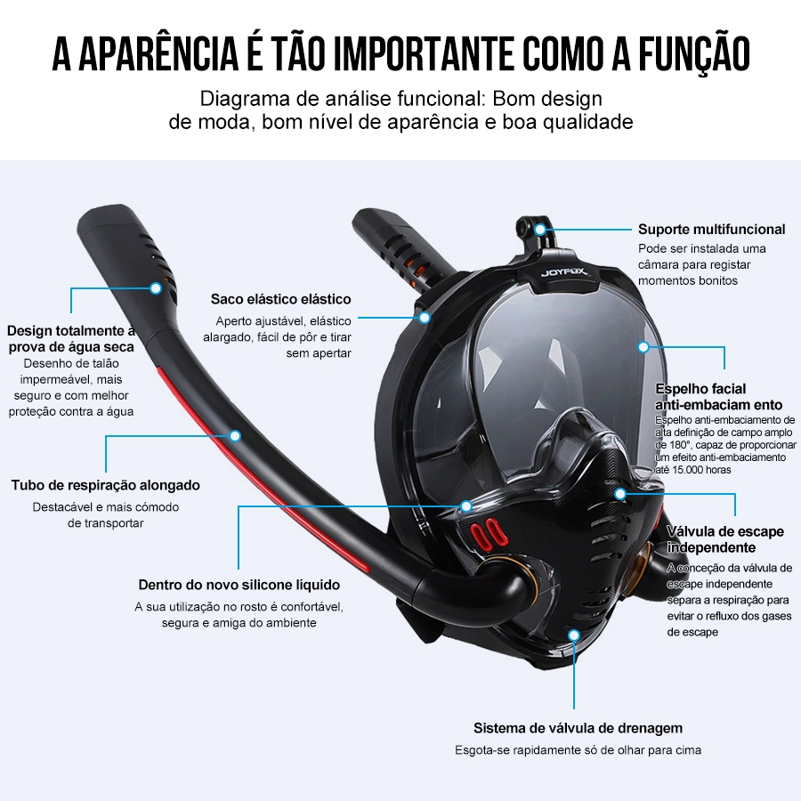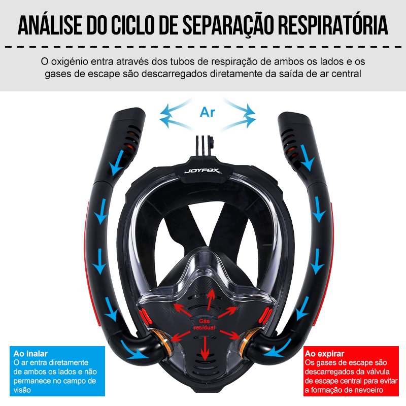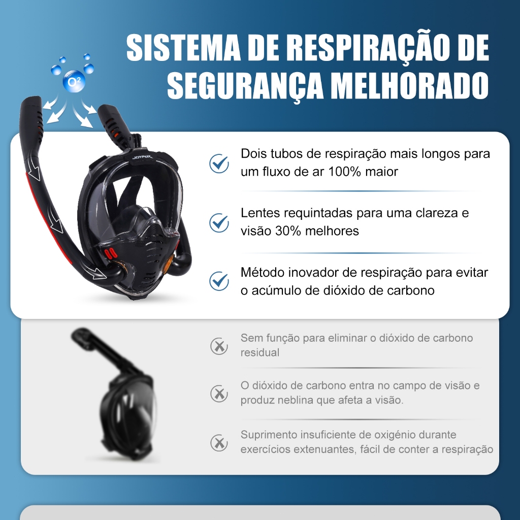 JOYFOX Máscara De Mergulho Dupla Tubo De Silicone Full Dry Adultos Face Snorkelling