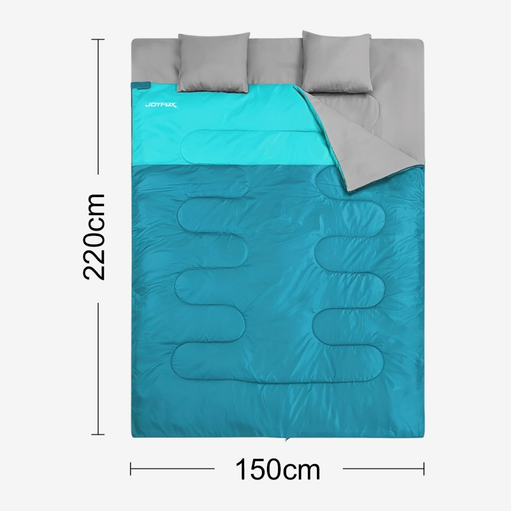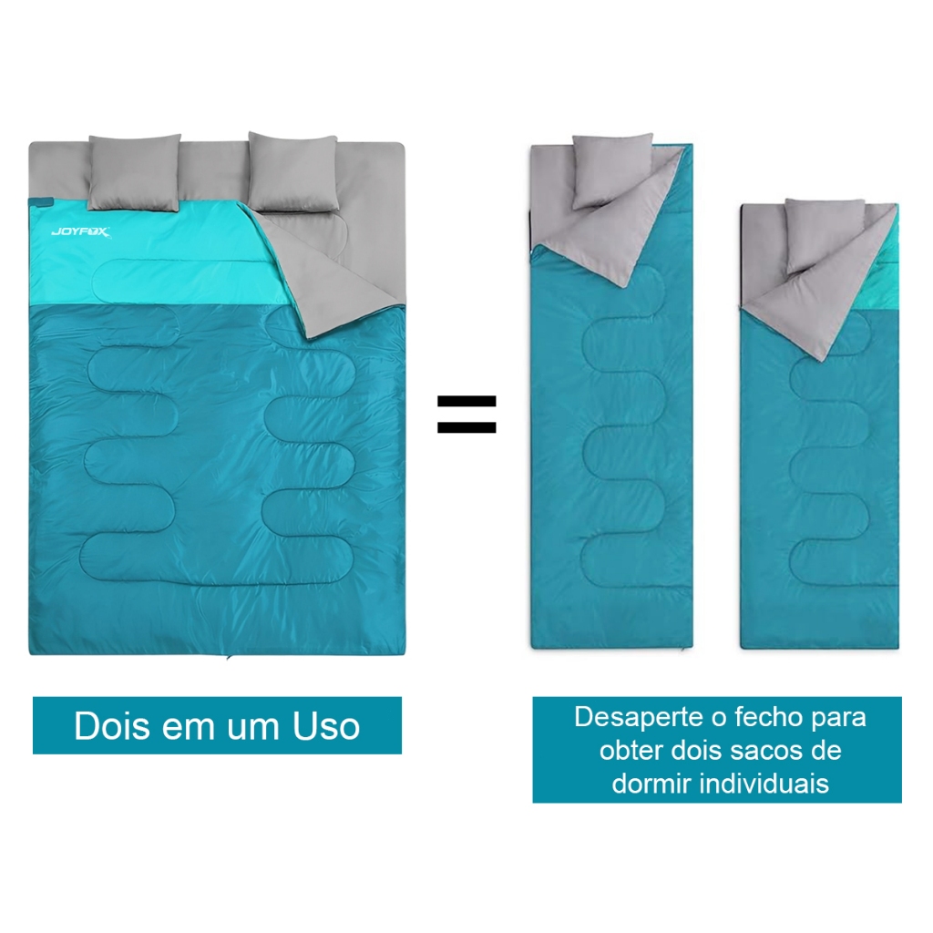 Saco De Dormir Casal Joyfox 220×150cm Com Travesseiros Integrados, Impermeável 190t, Forro De Algodão