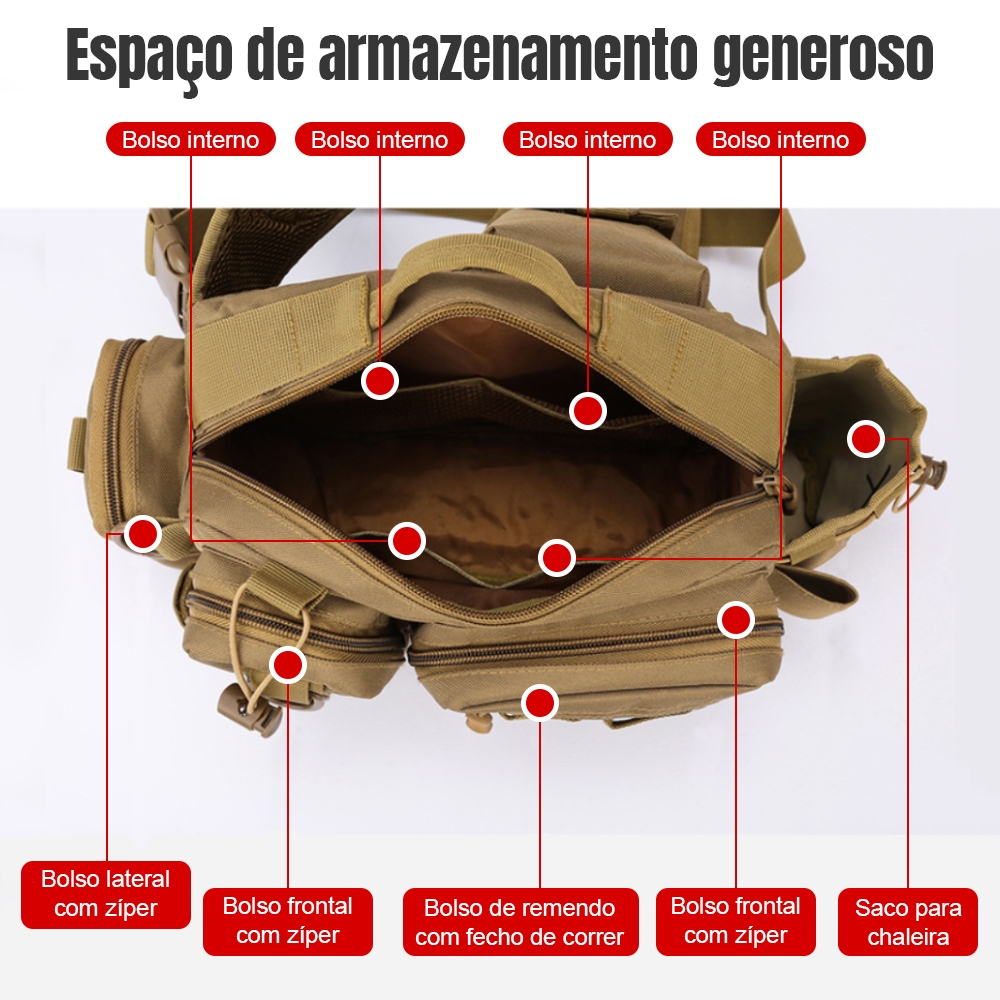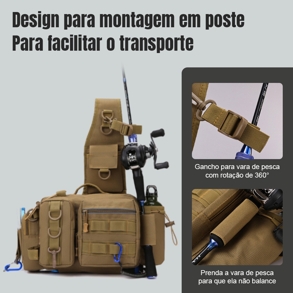 Bolsa de Pesca de Grande Mochila de Pesca Multifuncional Grande Impermeável com Suporte para Vara Estilo Tático