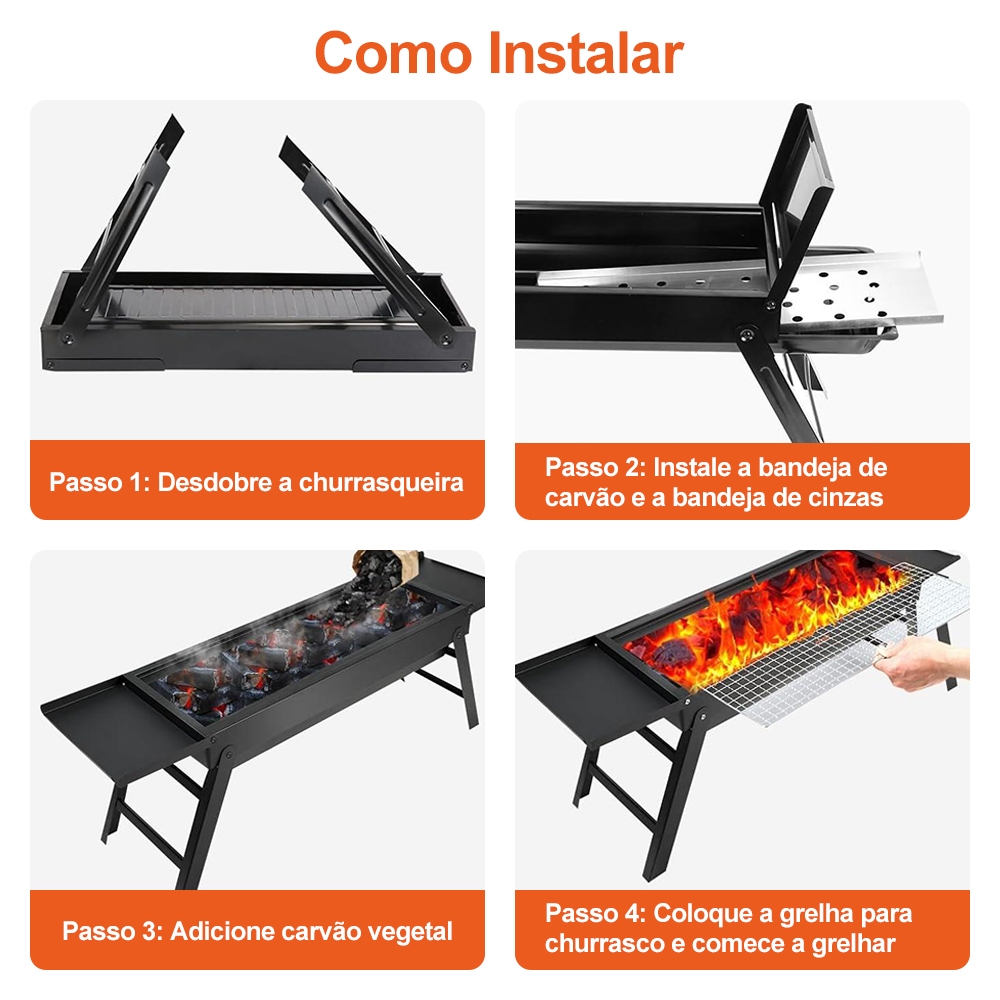 Churrasco Grelha dobrável para acampamento ao ar livre grelha de aço inoxidável fogão a carvão portátil
