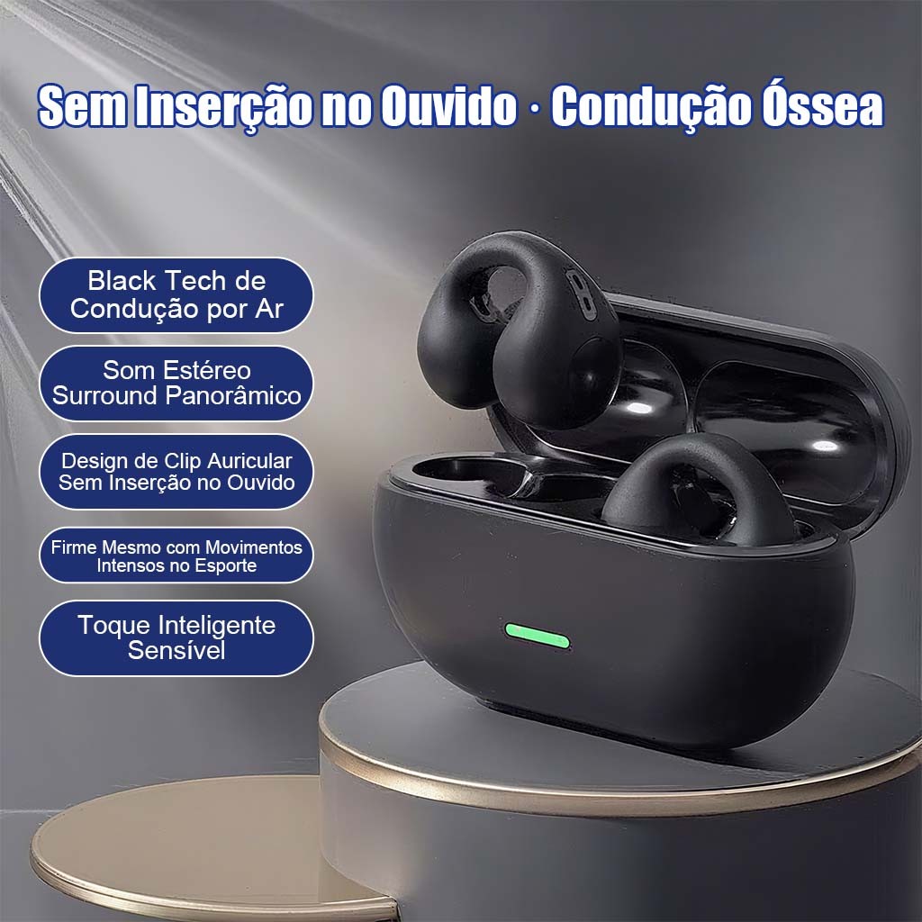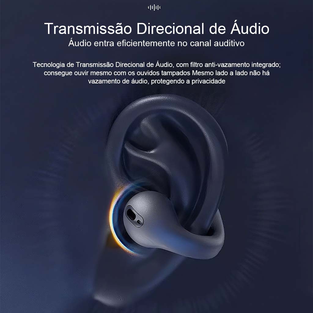 Fone de Ouvido Esportivo Bluetooth 5.3 AJ-D54 - OWS - Condução Óssea, Chamadas em Viva-Voz, Leve e Confortável