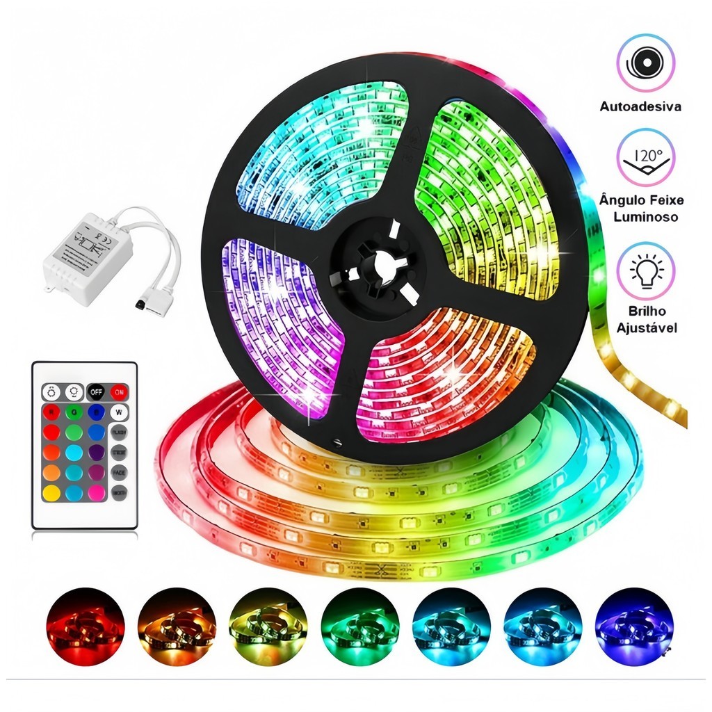 Fita RGB 3528 Super Led 5M Varias Cores Com Controle Remoto Envio Imediato