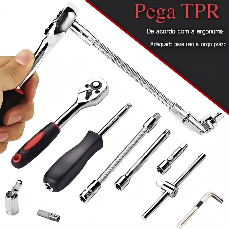 46 Peças Jogo De Chave Catraca Caixa De Ferramentas Completa Reversível Soquetes Maleta