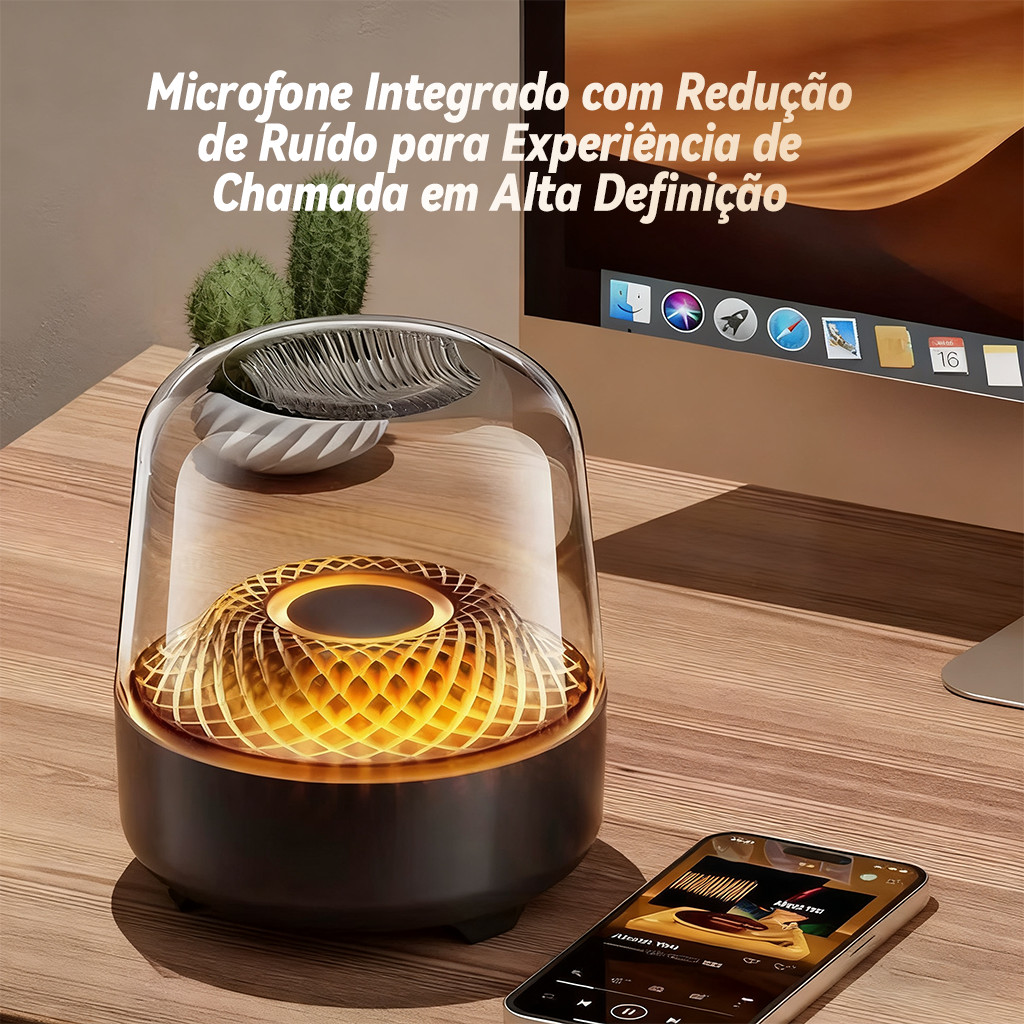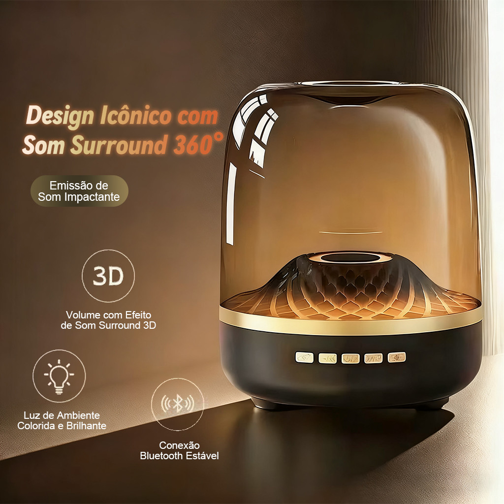 Alto-falante Bluetooth Sem Fio 5ª Geração com Graves Pesados Subwoofer – Modelo de Vidro Pequeno