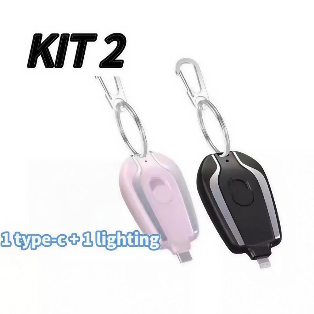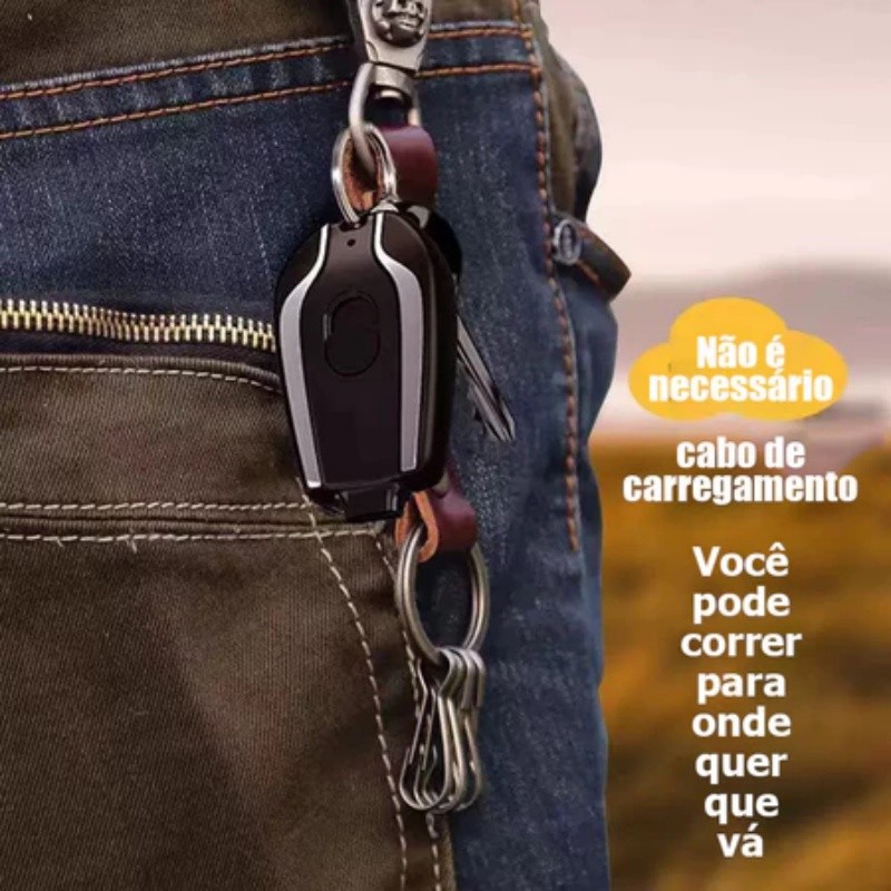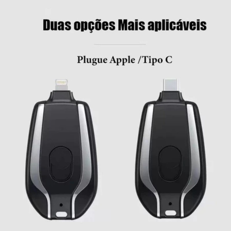 Carregador portátil para chaveiro | 1500mAh | Tipo C/Lightning