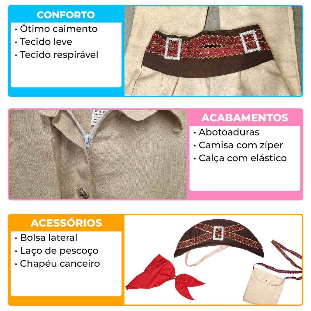Roupa Lampião Cangaceiro Adulto Masculino Luxo Com Chapéu E Bolsa Festa Junina