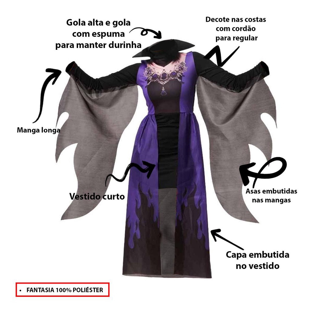 Fantasia Vampira Halloween Moderna Adulta Feminina de Luxo