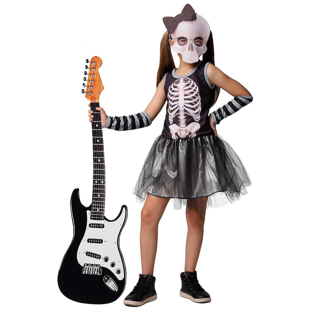 Fantasia Caveira Rockstar Infantil com Máscara e Luvas de Halloween