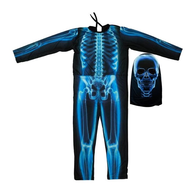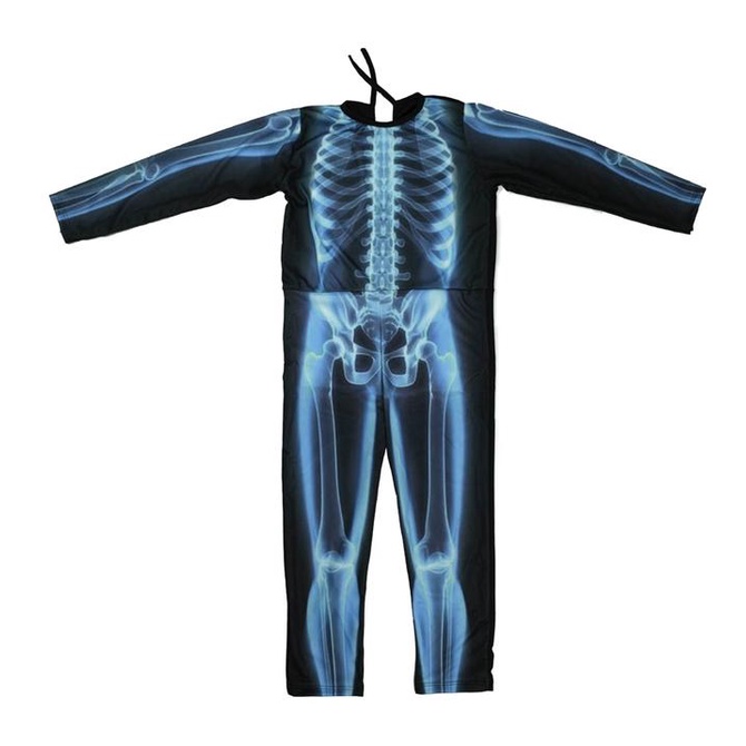 Fantasia Caveira Infantil Longa Com Gorro Esqueleto Raio-x de Halloween
