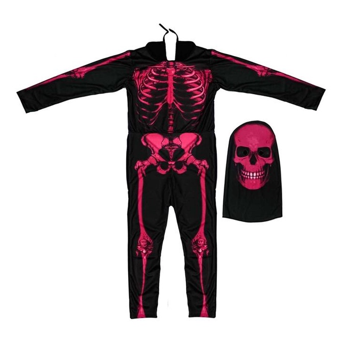 Fantasia Caveira Infantil Com Gorro Esqueleto Com Ossos Rosa Neon