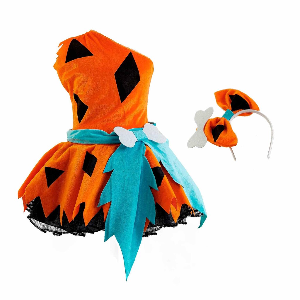 Fantasia Pedrita Flintstone Mulher da Caverna Vestido Adulto Com Tiara