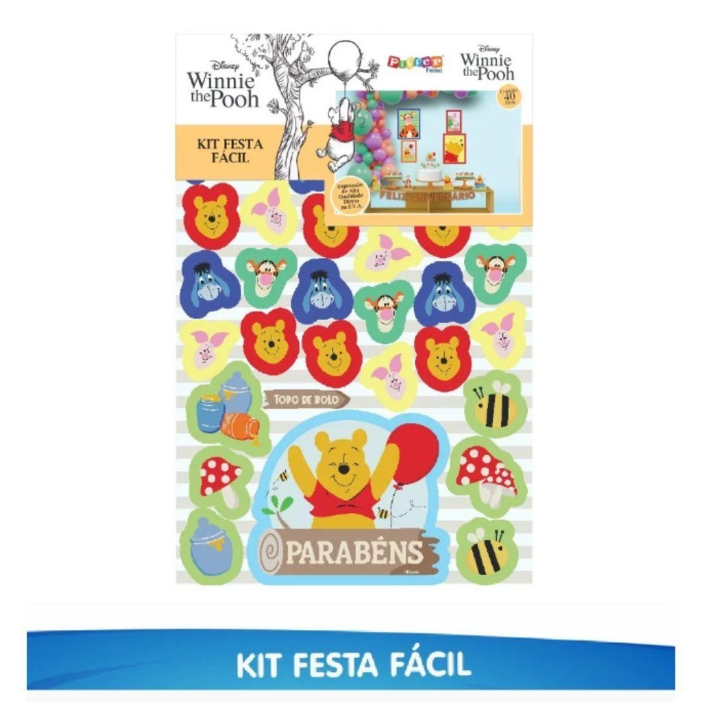 Decoração Festa Aniversário Infantil Bebe Ursinho Pooh Com 40 Enfeites