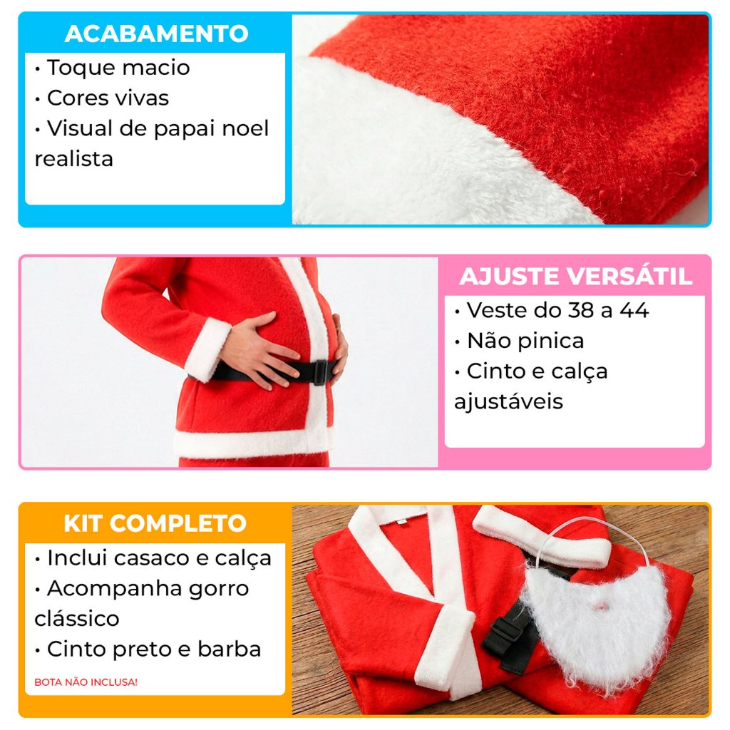 Fantasia Papai Noel Barata Adulta Masculina Completa Com Gorro e Barba