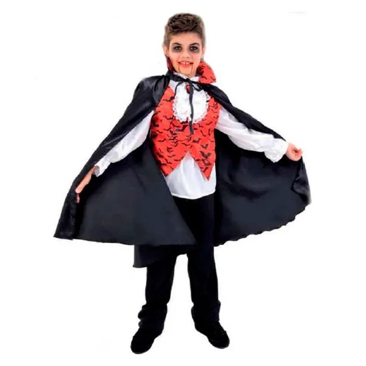 Fantasia Vampiro Infantil de Halloween Conde Drácula Com Colete e Capa