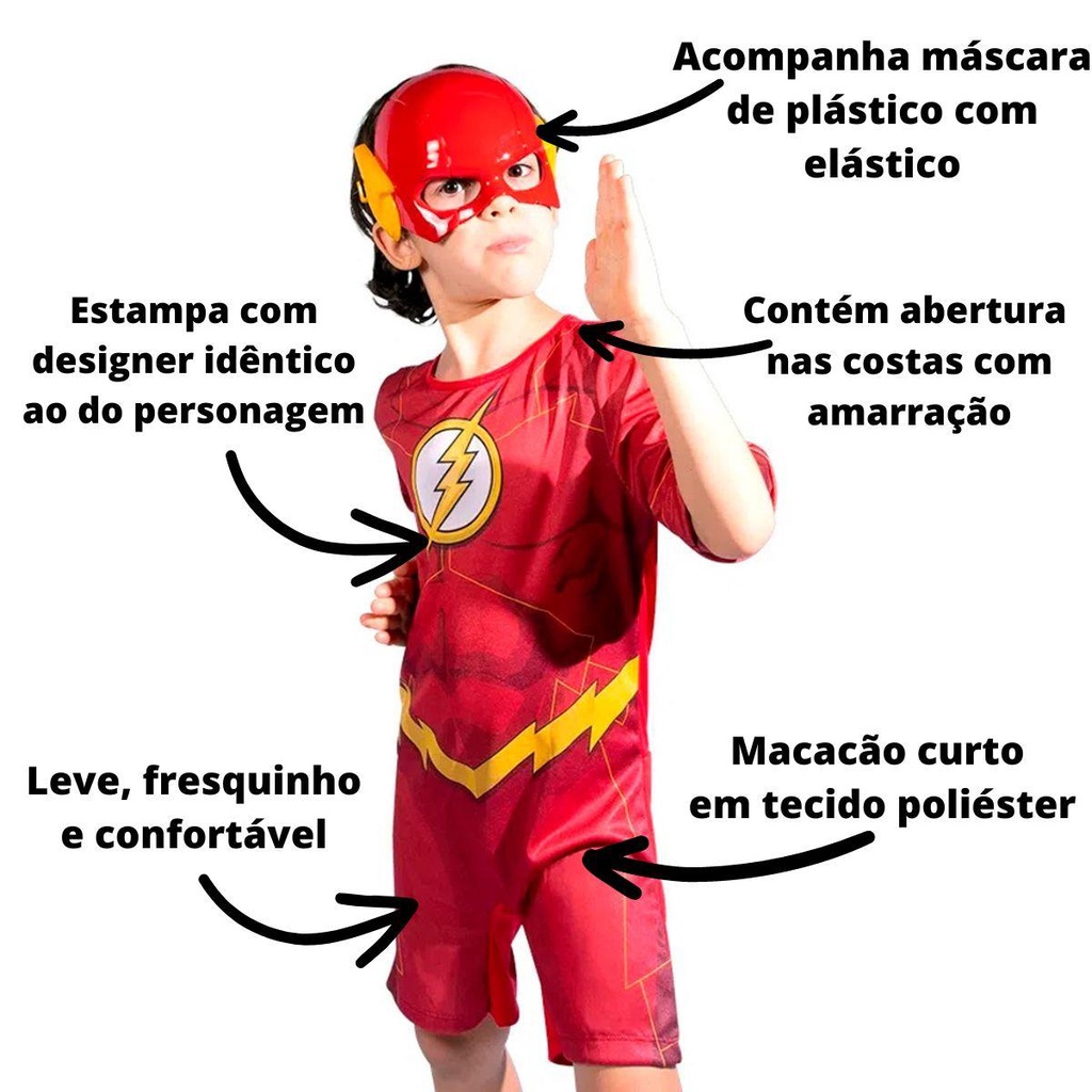 Fantasia The Flash Infantil Para Menino Curta Com Máscara