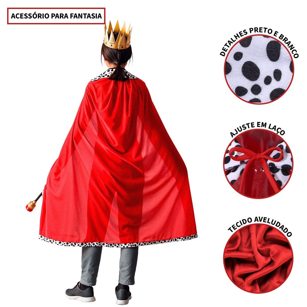 Capa Vermelha de Luxo Aveludada pra Fantasia Rei Príncipe Medieval Realeza Carnaval Festas e Halloween 130 cm