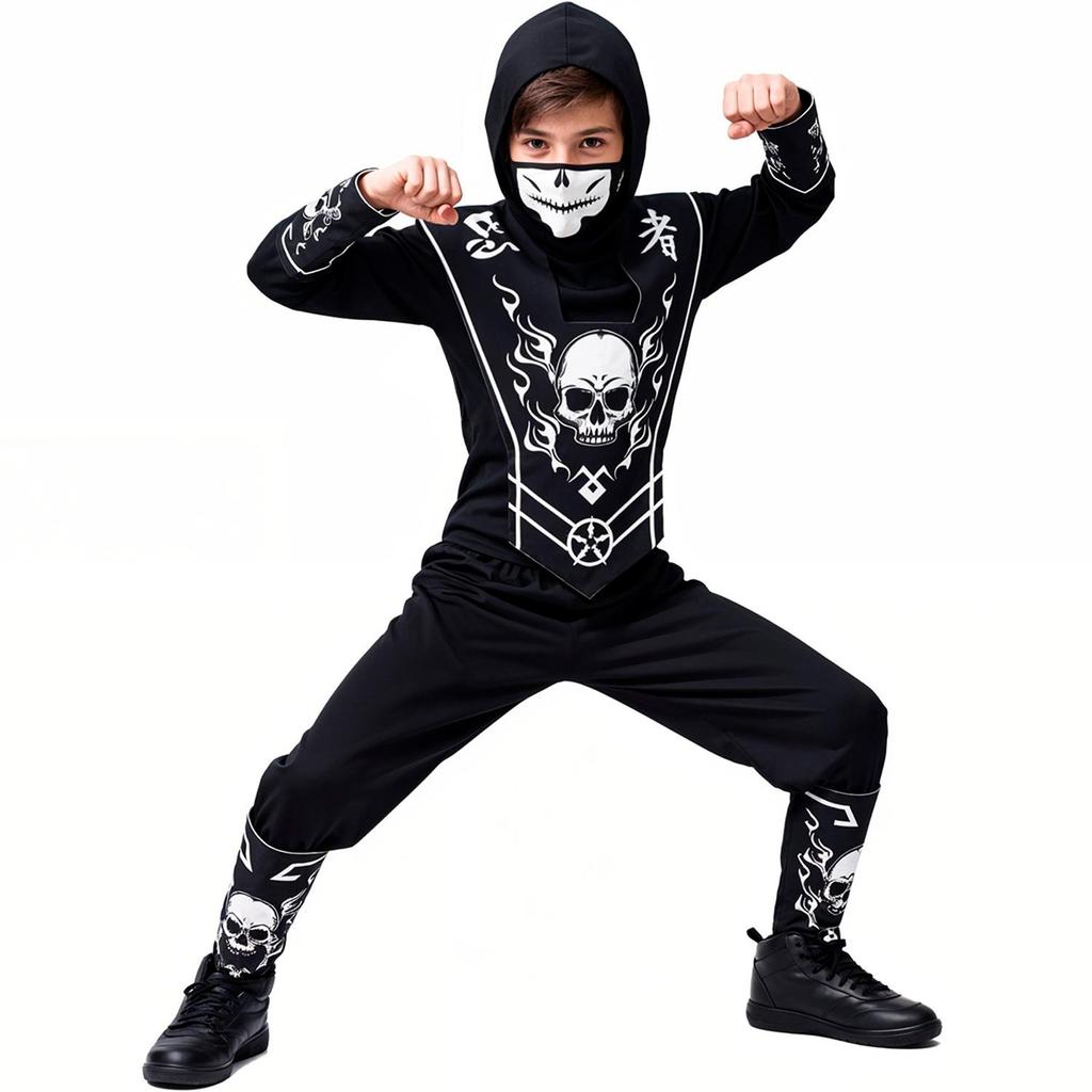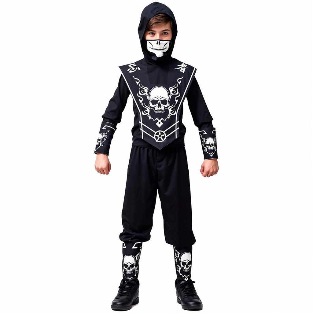 Fantasia de Halloween Ninja Sombrio Infantil Com Balaclava e Bracelete