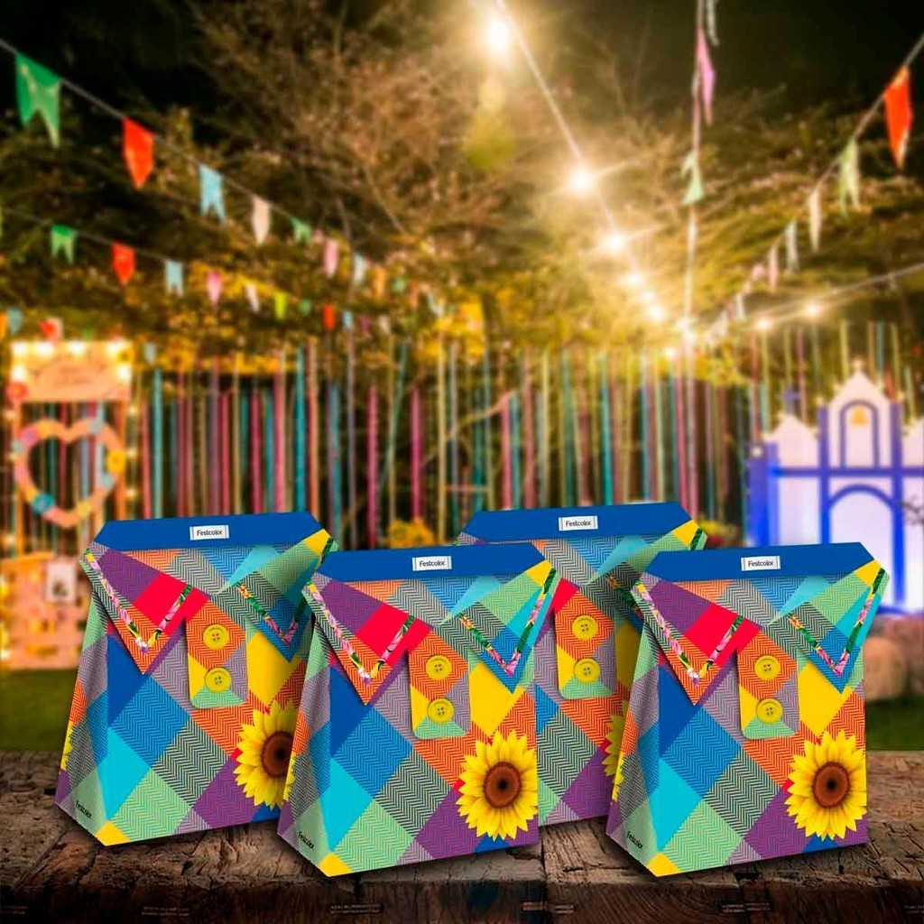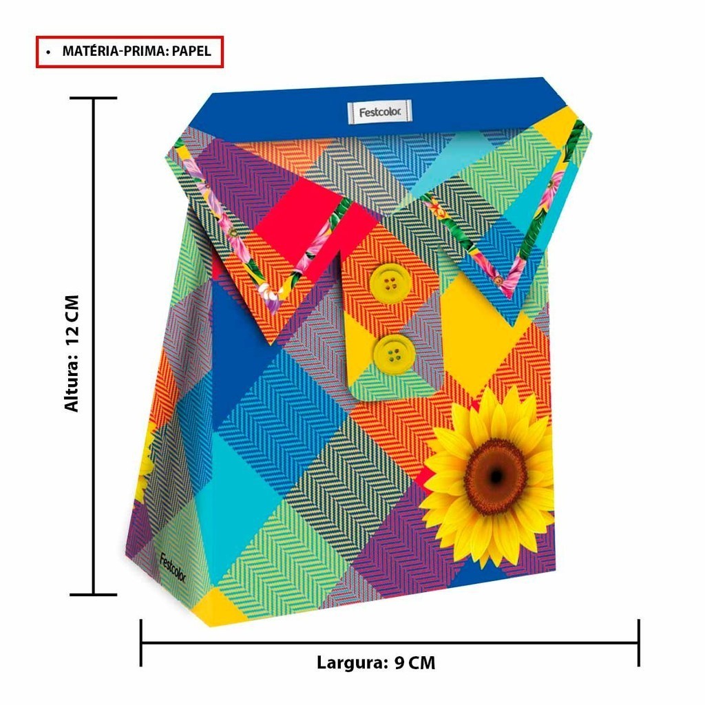 Decoração Festa Junina Mesa de Aniversário Kit 8 Caixinhas Surpresa Camisa Xadrez Caipira