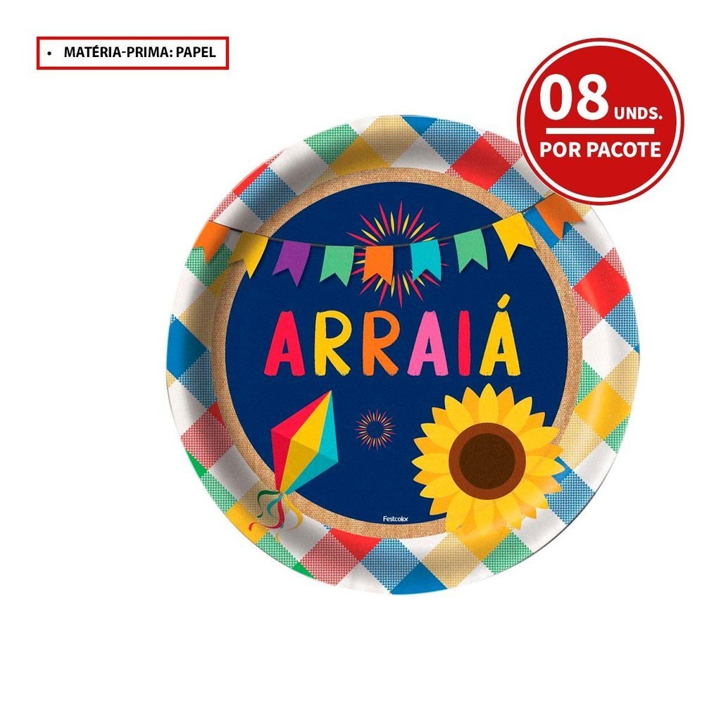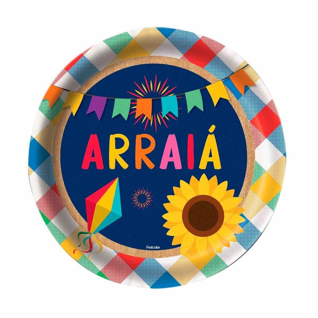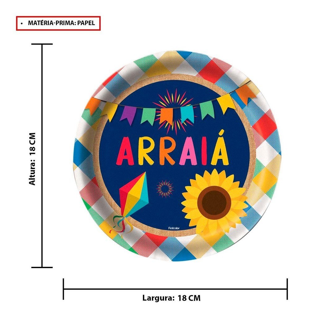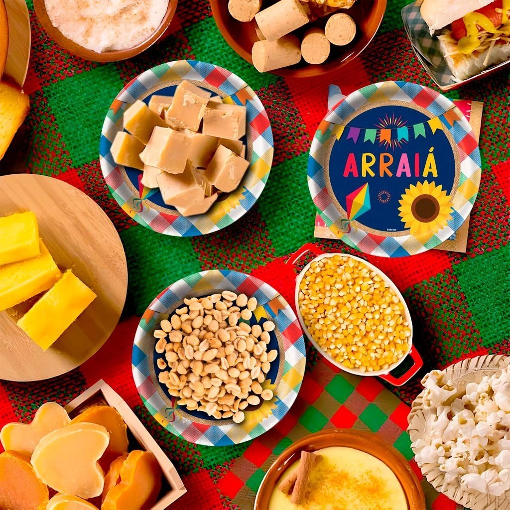 Enfeite Festa Junina de Mesa Kit 8 Pratinhos de Papel Descartável Com Balão e Bandeirinhas de São João