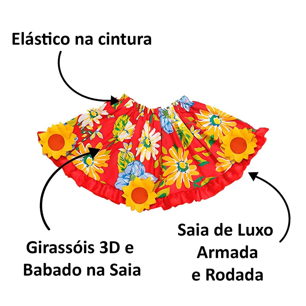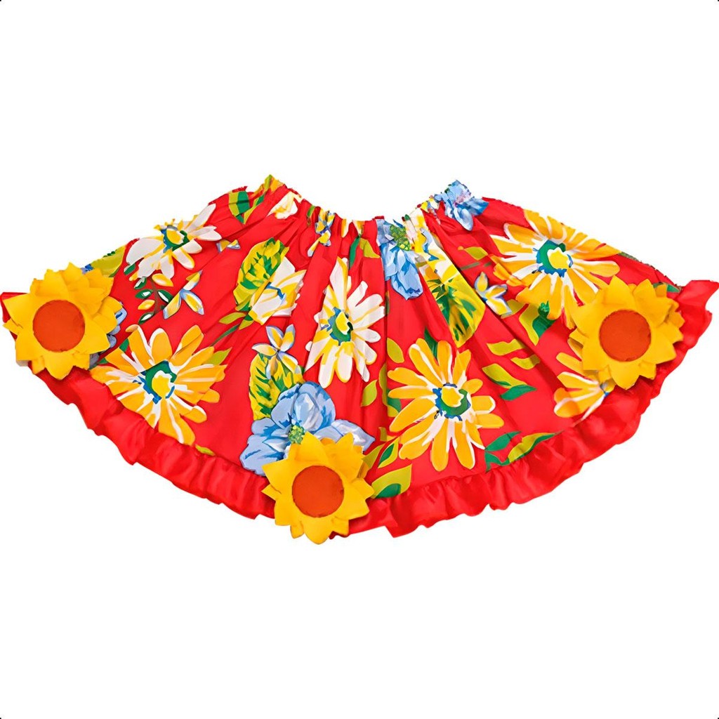 Saia de Festa Junina Feminina Florida Adulta + Tiara Caipira