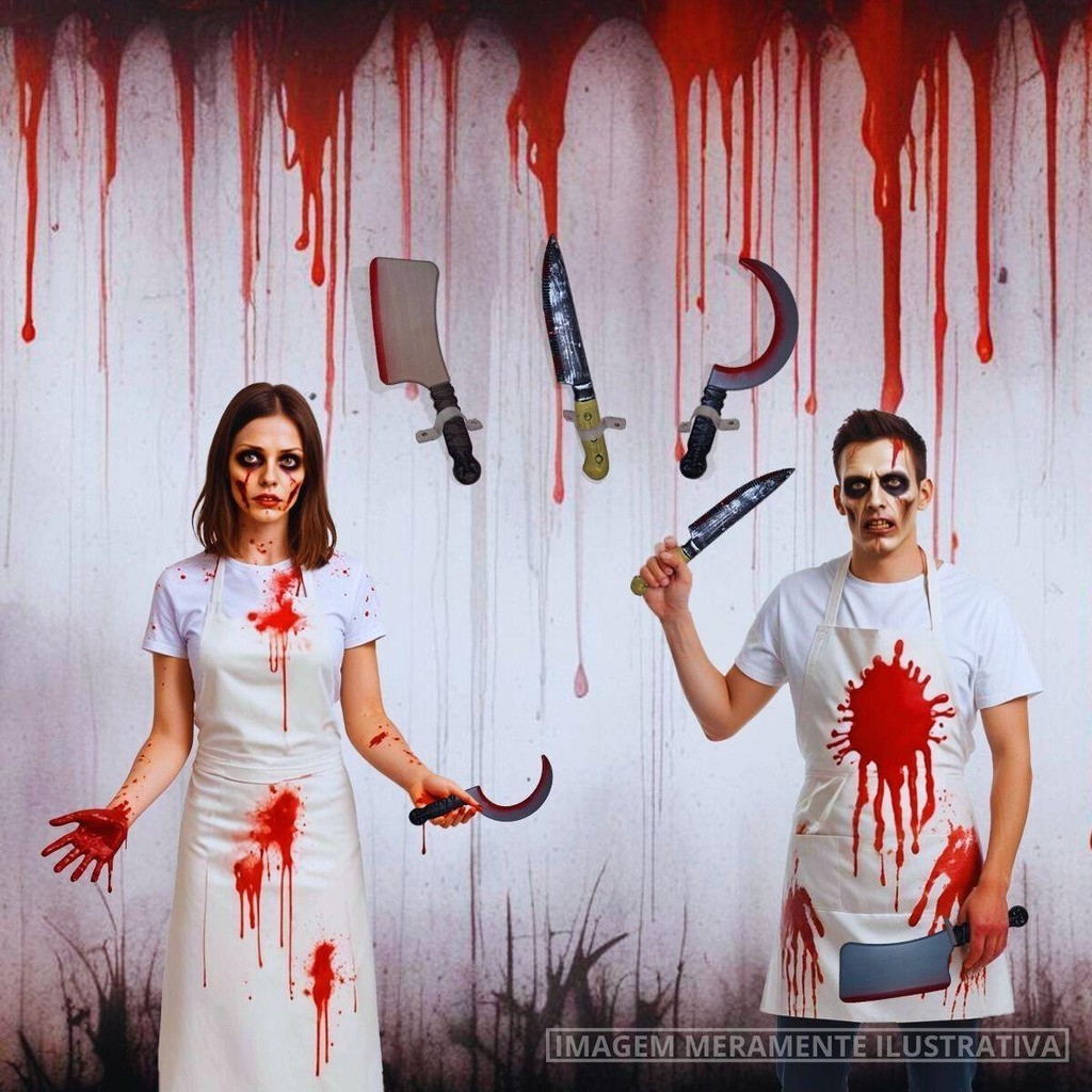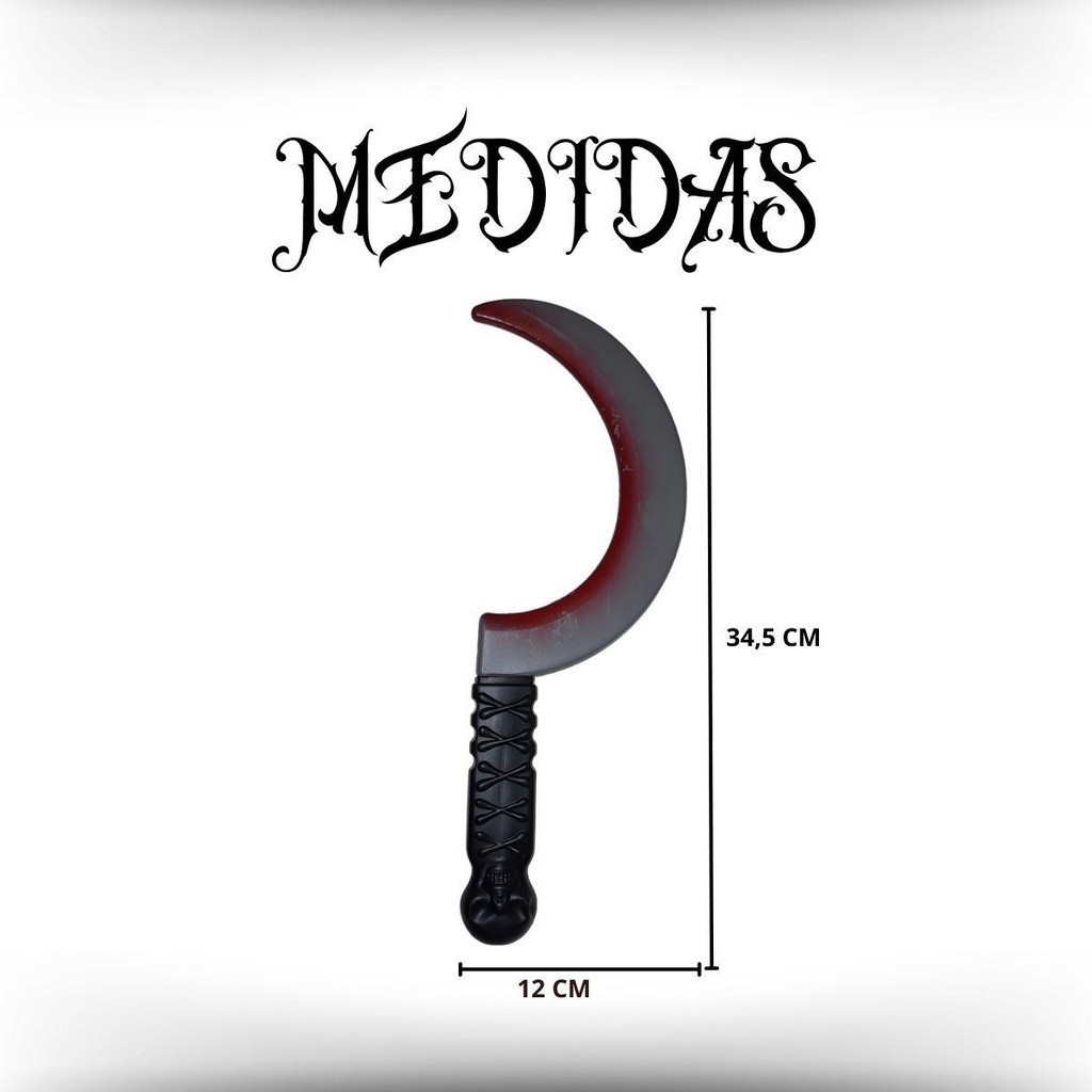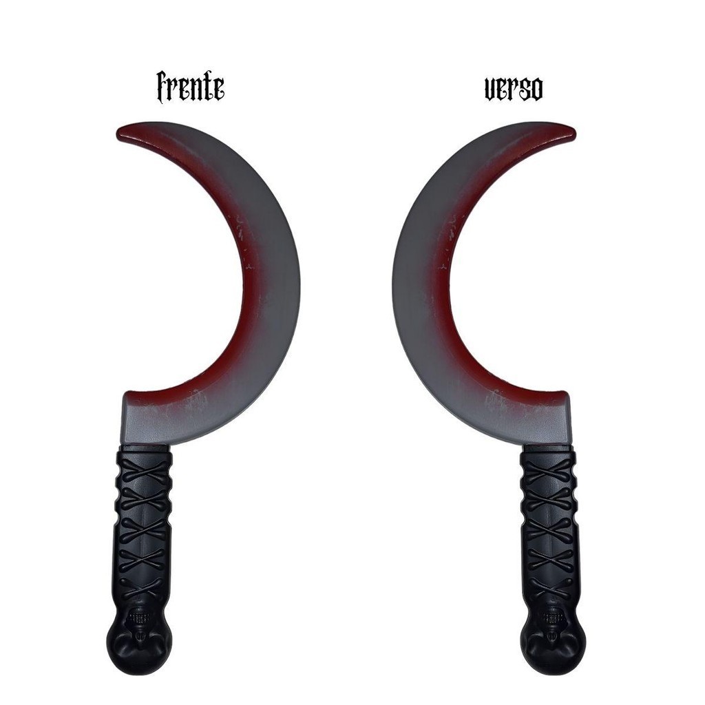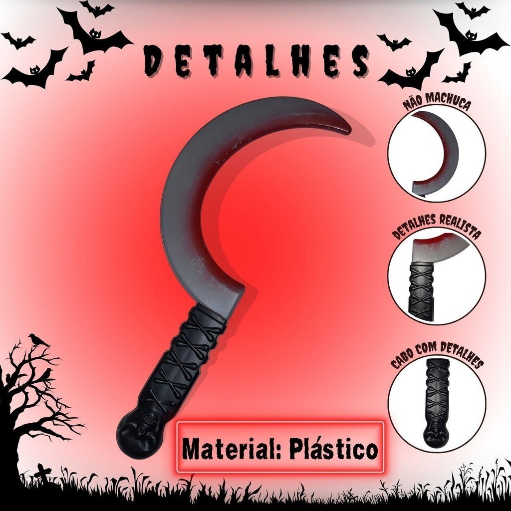 Foice de Plástico Realista com Cabo de Caveira Acessório de Mão para Fantasia de Terror