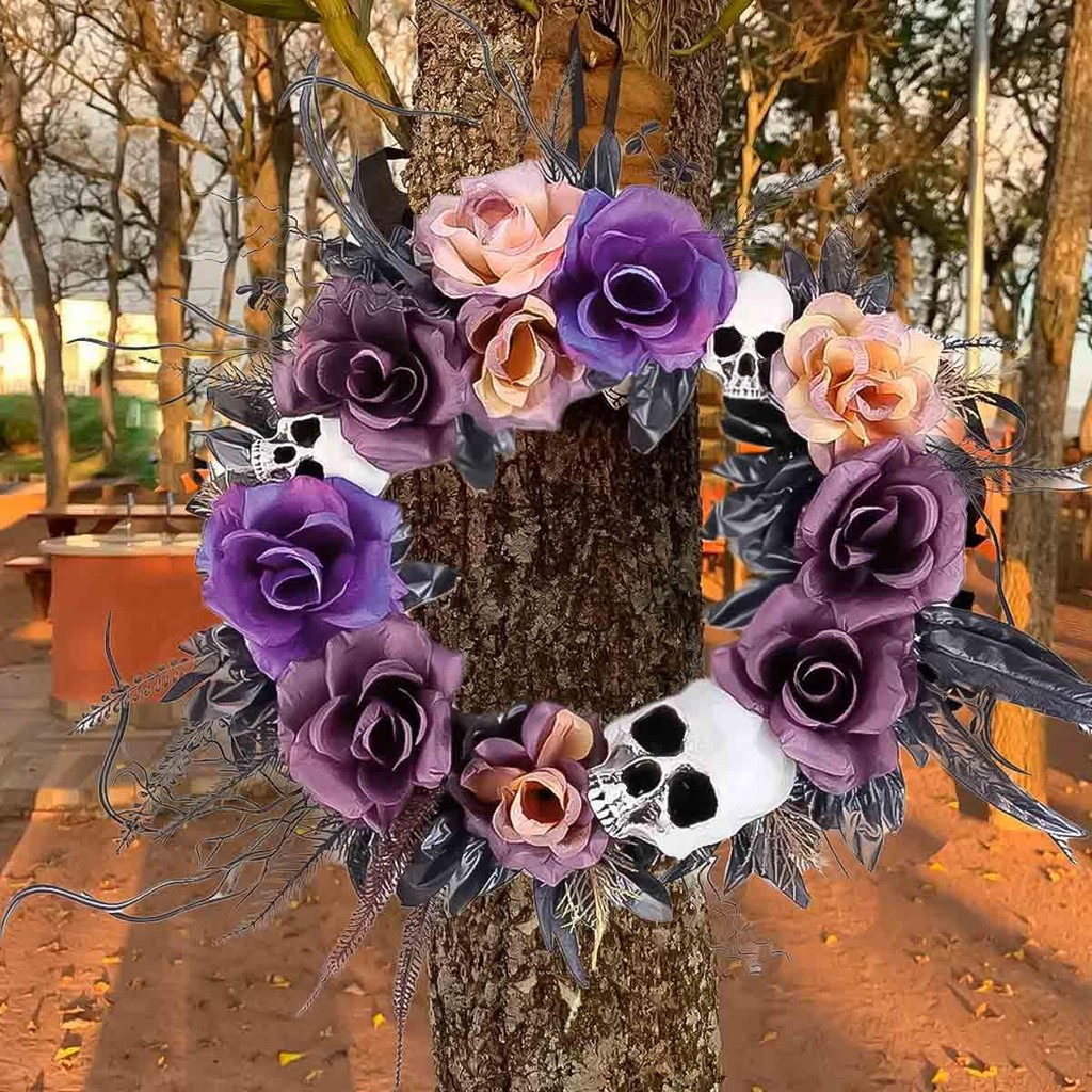 Decoração de Halloween Guirlanda Caveira Com Flores