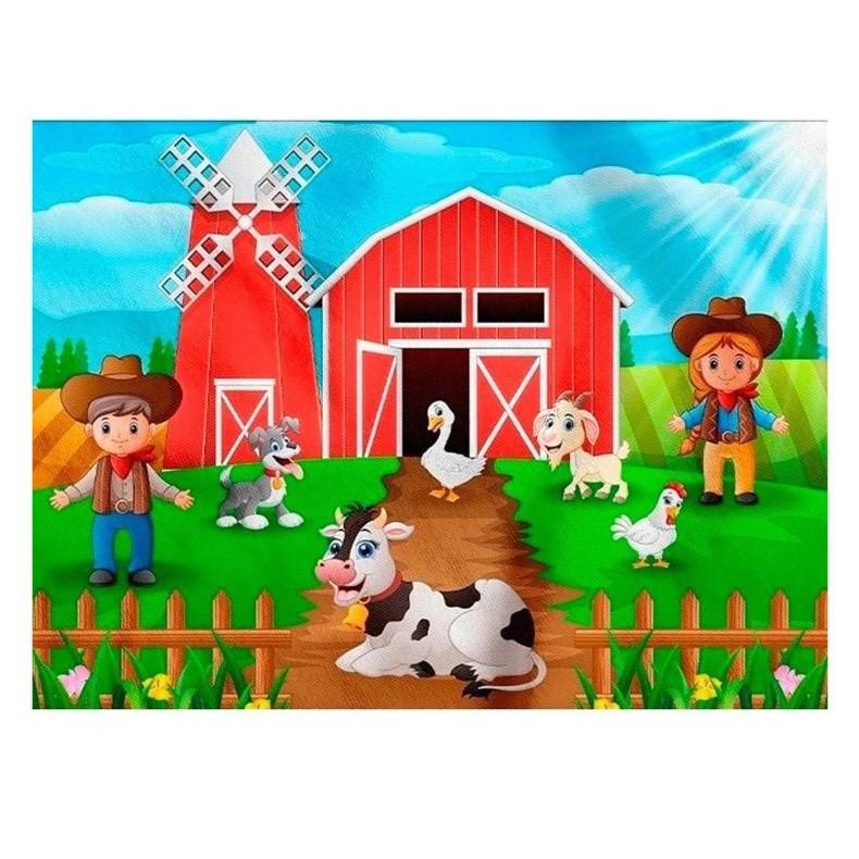Painel Festa Aniversário Fazenda com Animais e Celeiro Gigante 140 cm Decoração Fazendinha