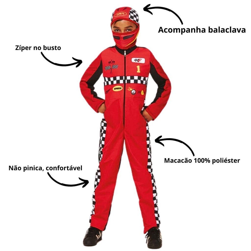 Fantasia Infantil Piloto De Corrida Longa com Capacete de Tecido