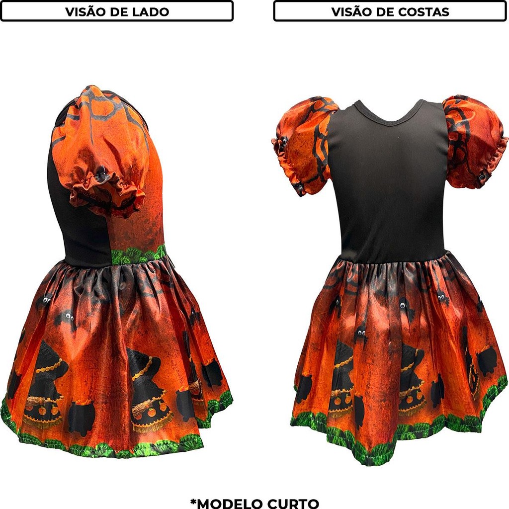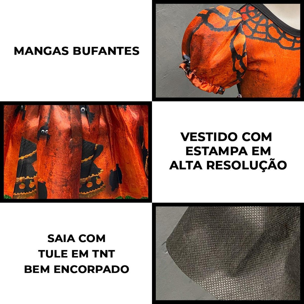 Fantasia Halloween Infantil pra Menina Vestido de Bruxa Com Aranhas de Luxo