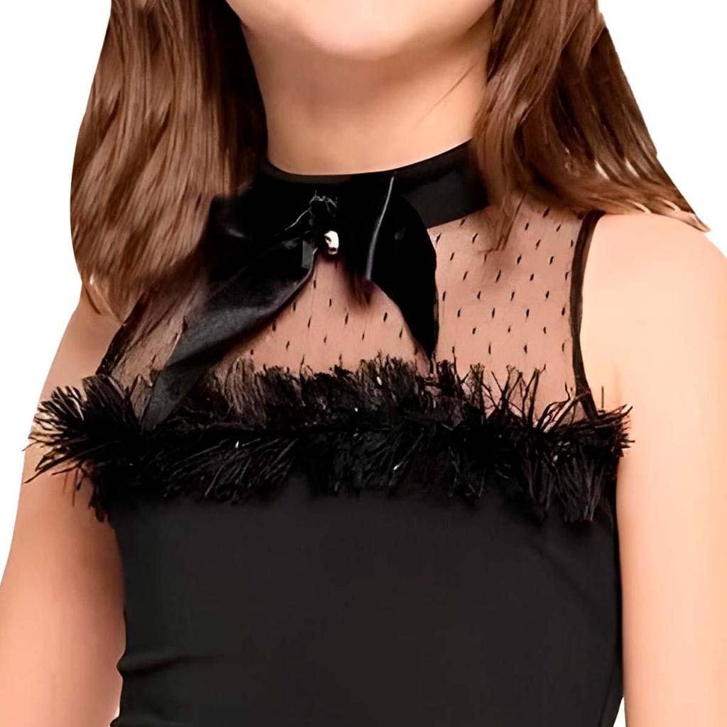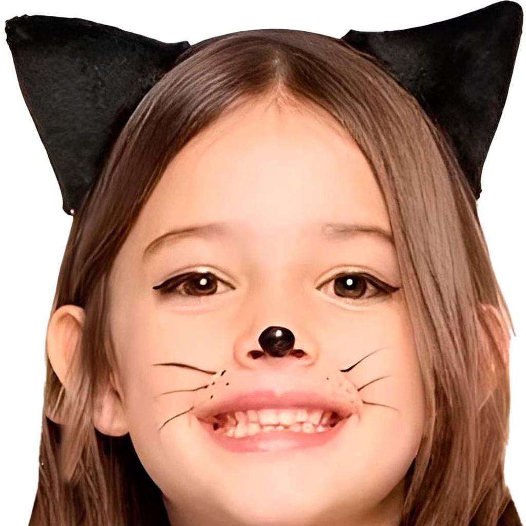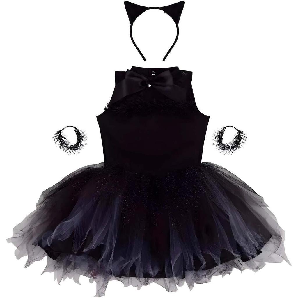 Fantasia Halloween Infantil pra Menina de Luxo Vestido Gatinha Preta Com Tiara e Pulseiras
