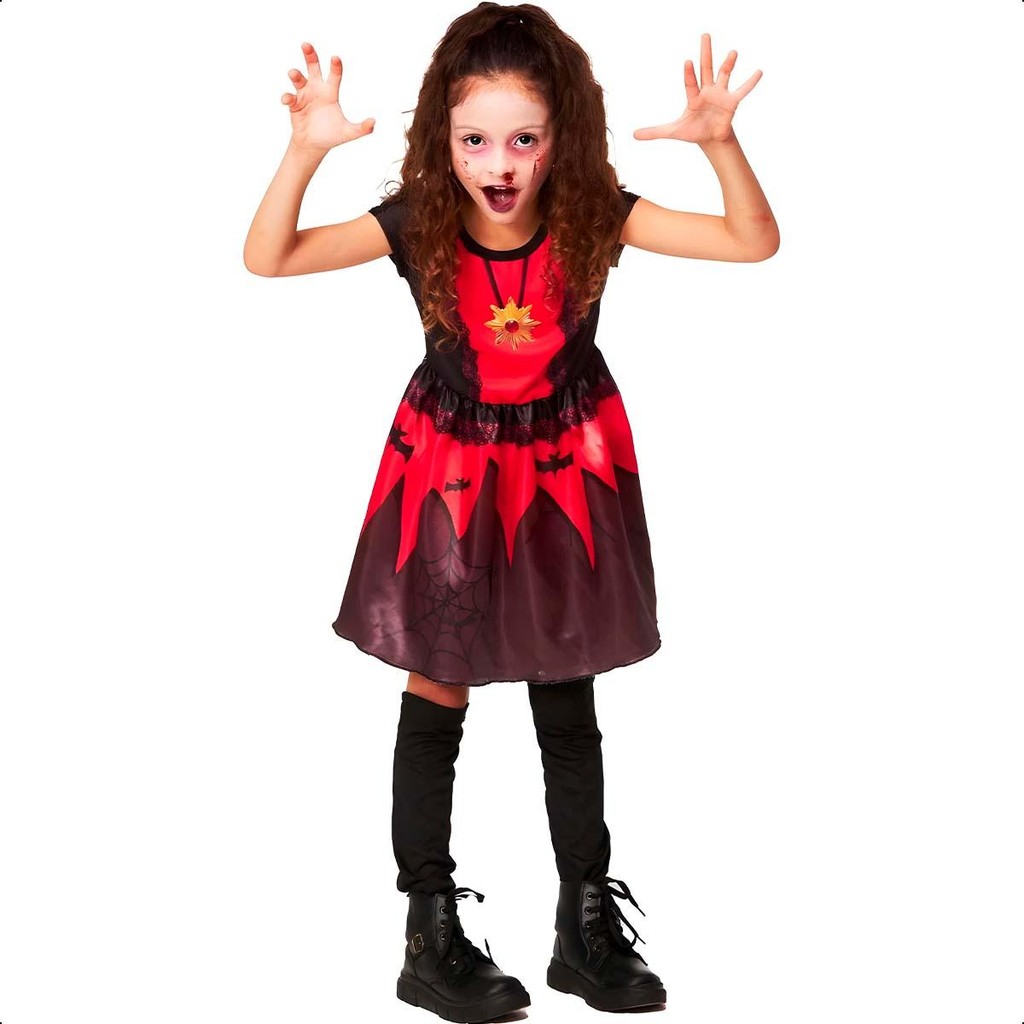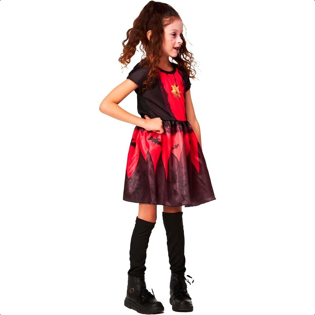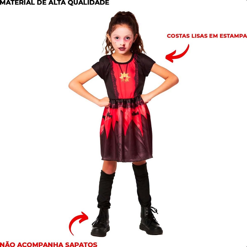 Fantasia Halloween Vampira Infantil pra Menina com Meias
