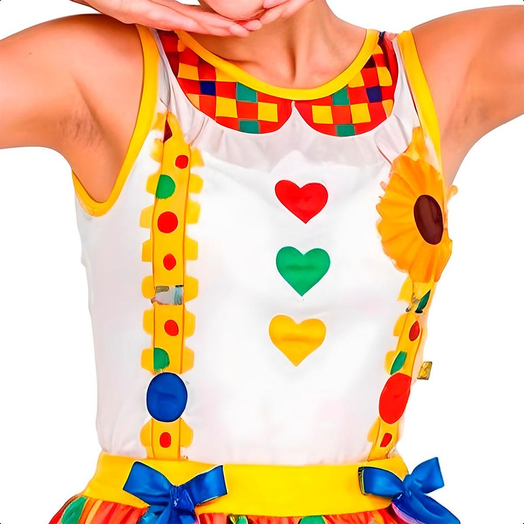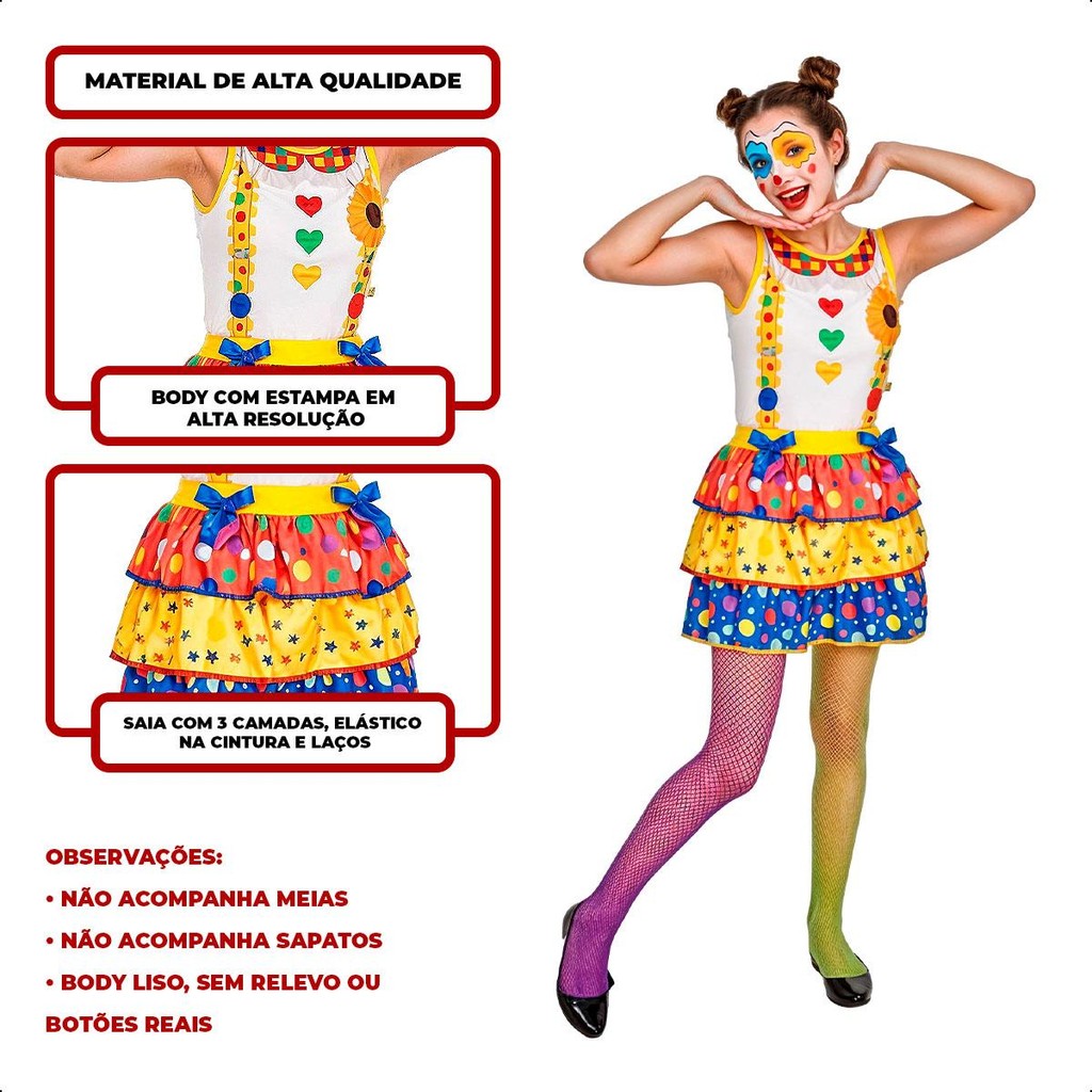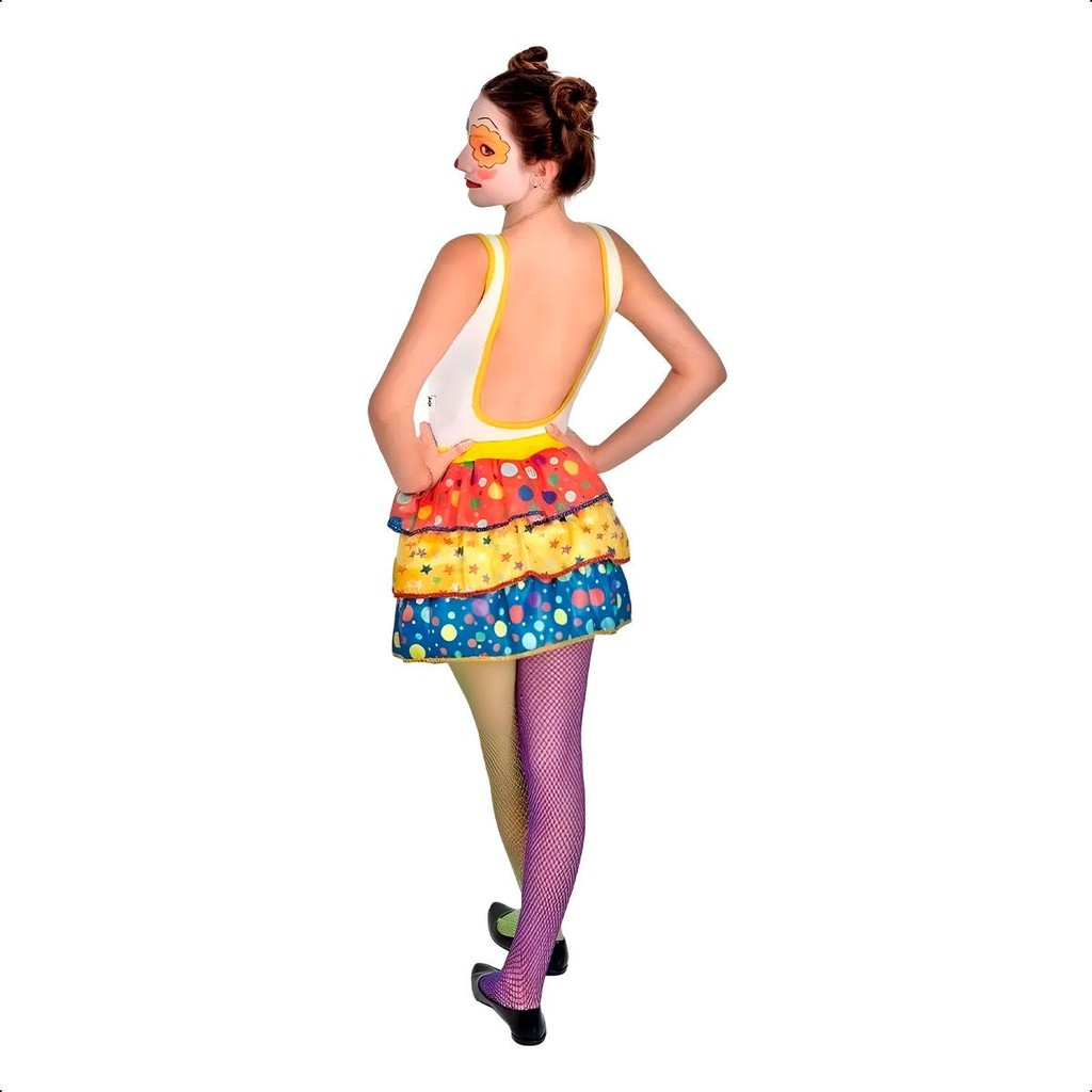 Fantasia Adulta Feminina Palhacinha de Circo Divertida pra Festa Carnaval e Halloween