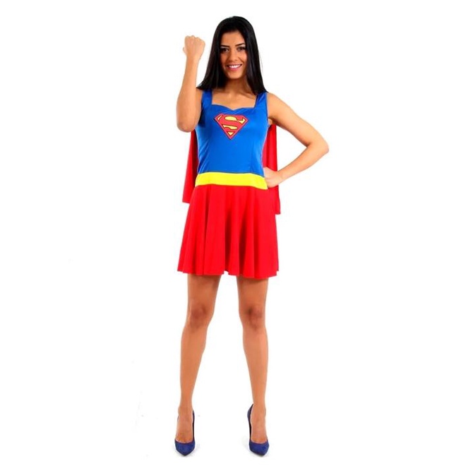 Fantasia Super Mulher Adulto Verão Com Capa