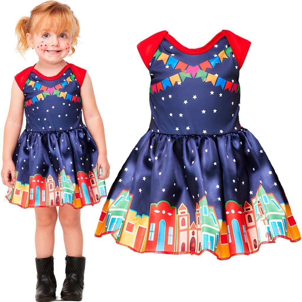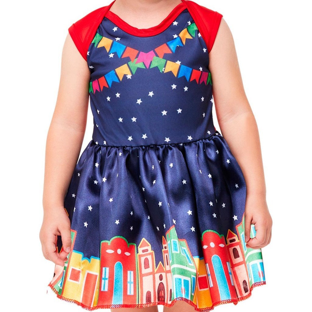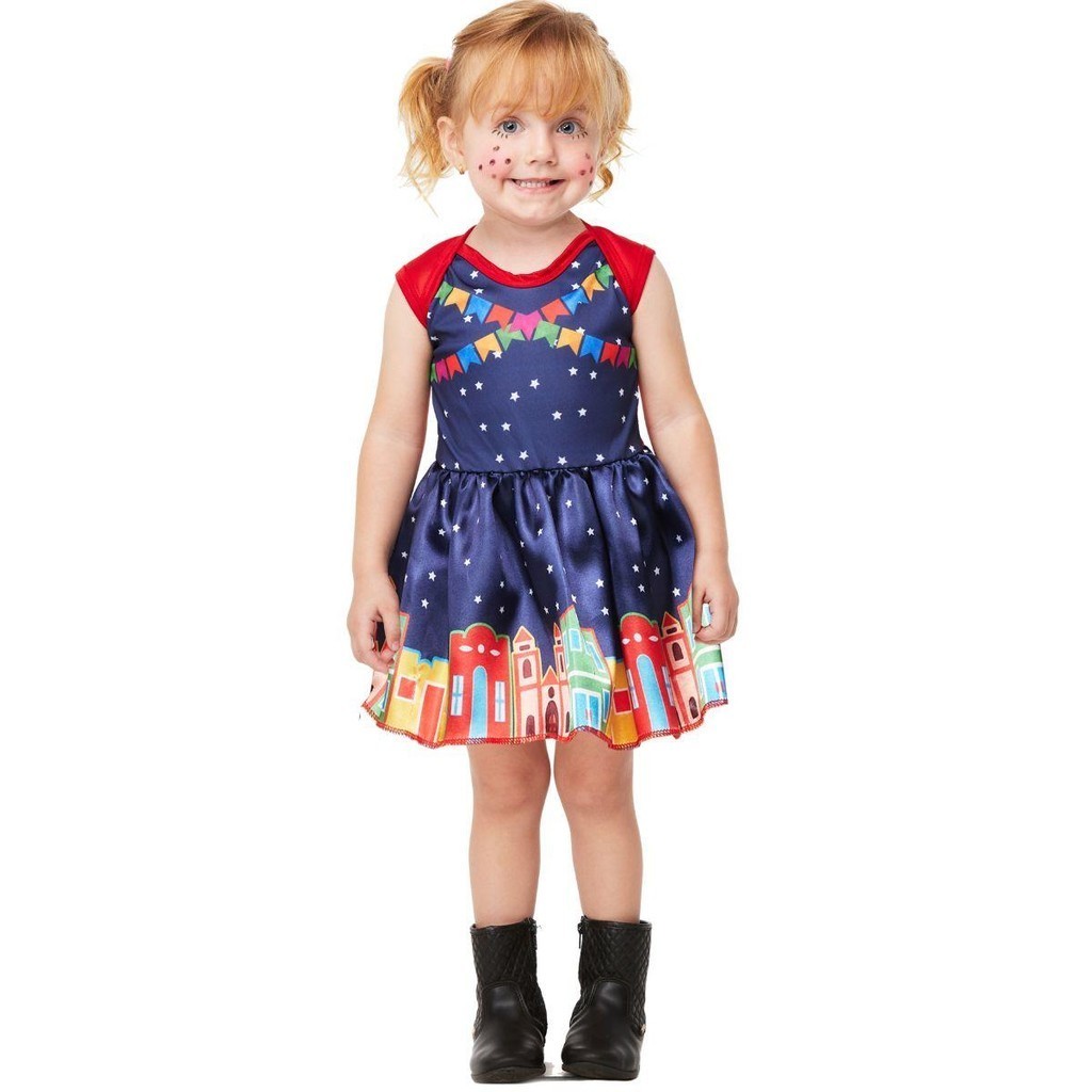 Vestido Bebe de Festa Junina Roupa de Quadrilha pra Menina Caipira 3 a 18 meses