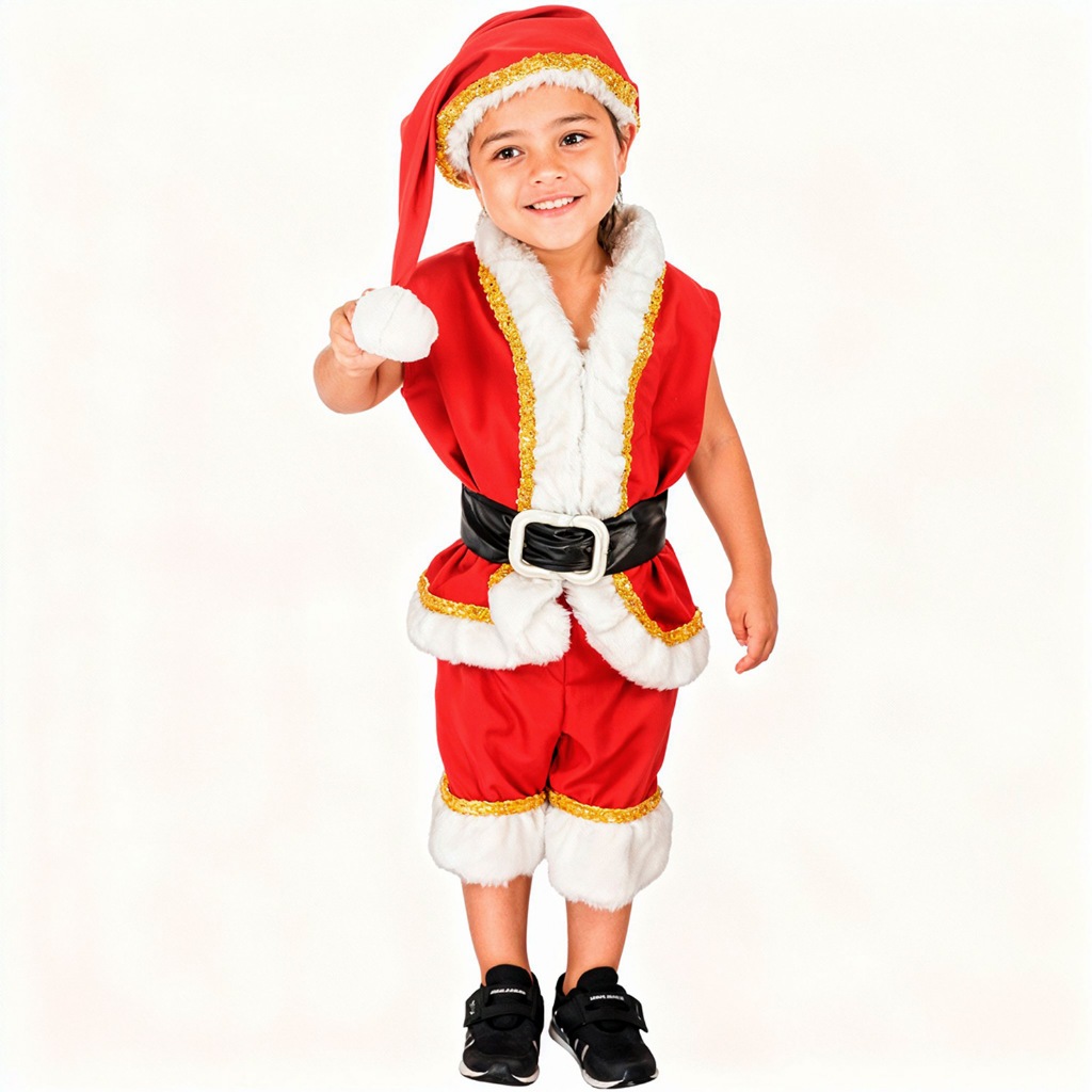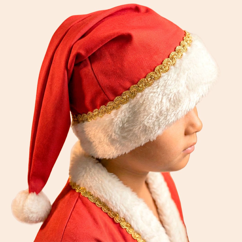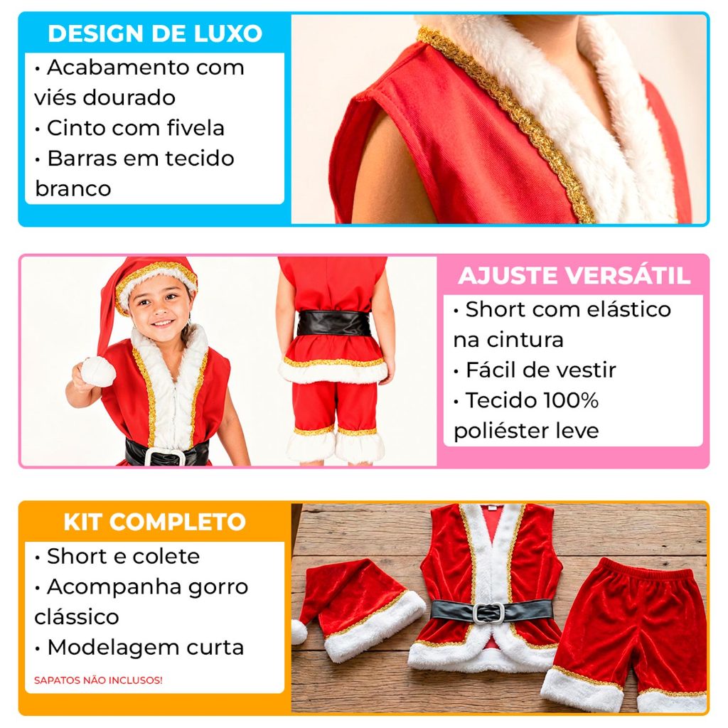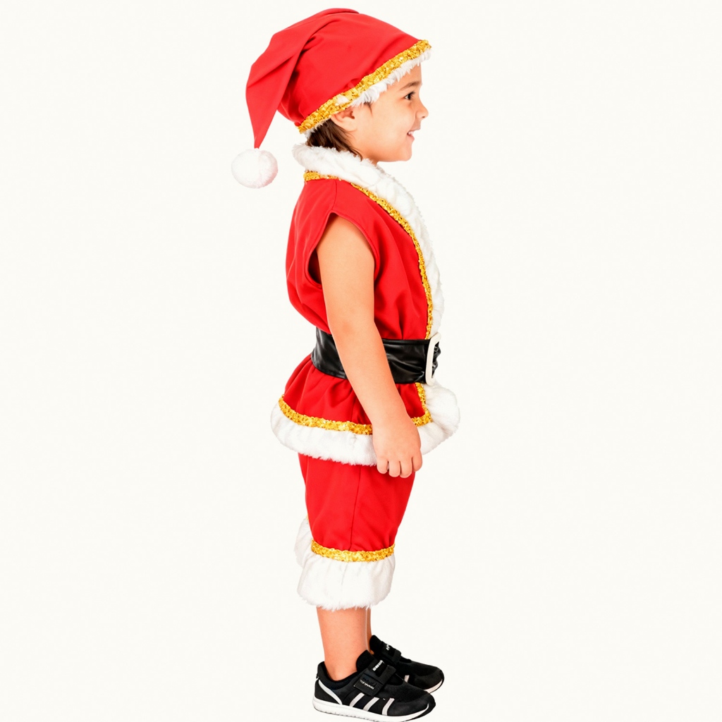 Fantasia De Papai Noel Infantil Curta Luxo Com Gorro