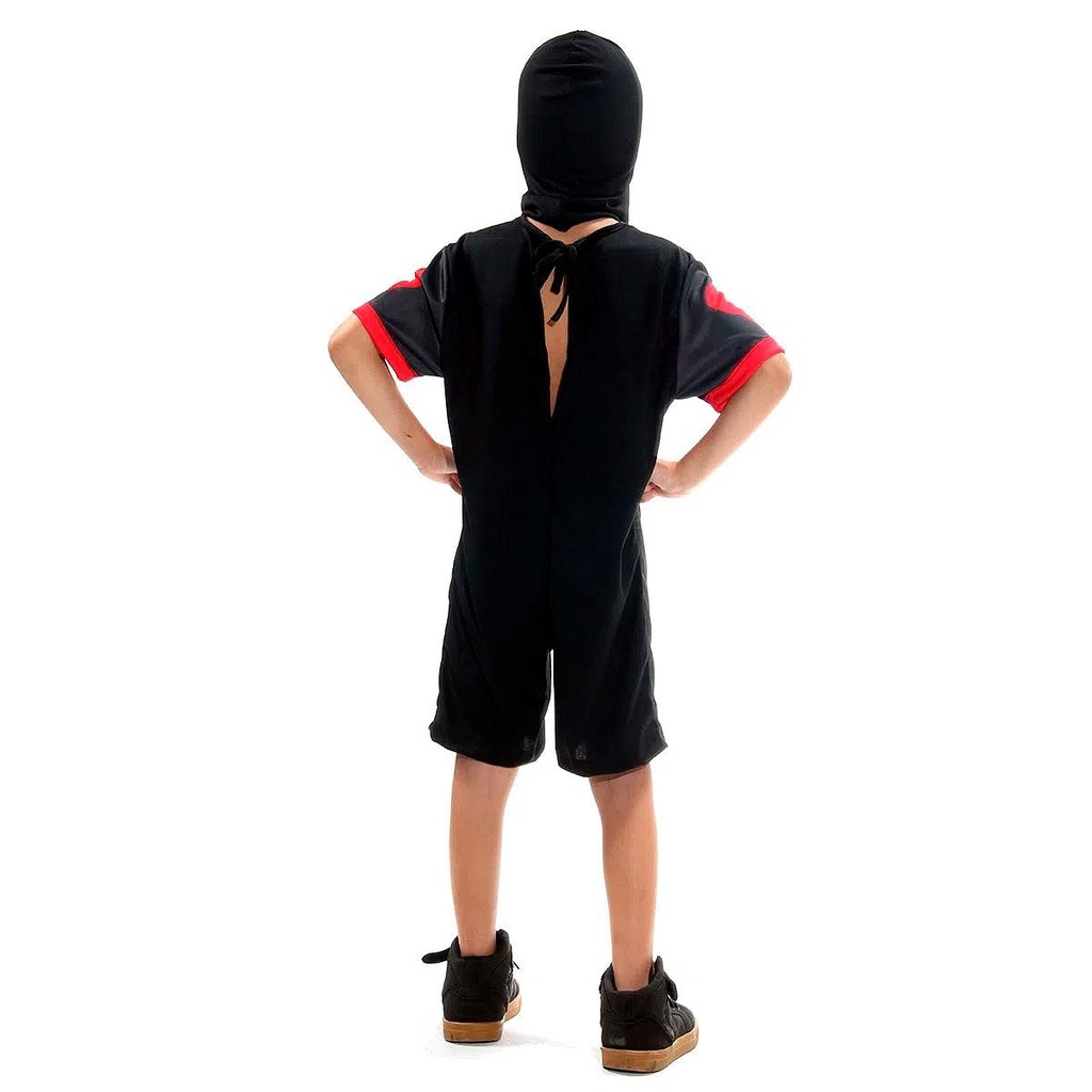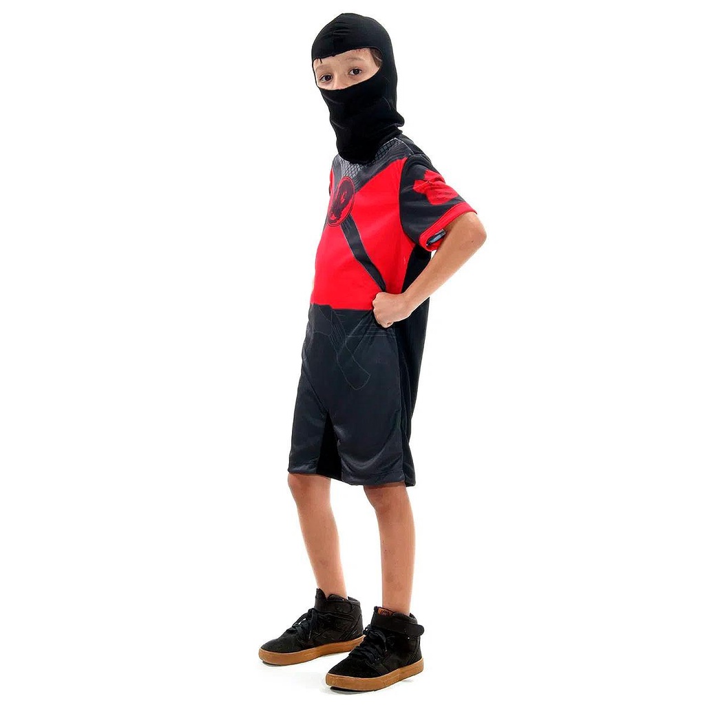 Fantasia de Ninja Vermelho Curta Infantil Com Gorro