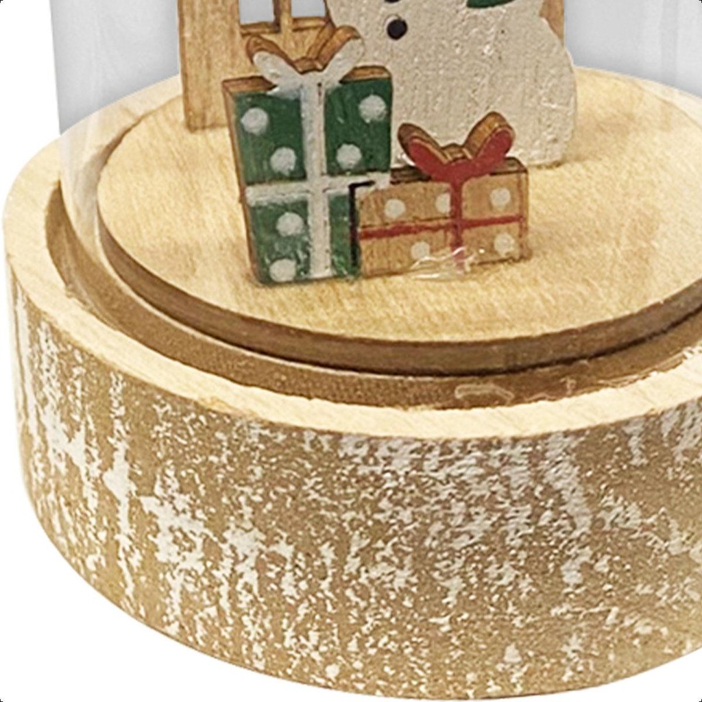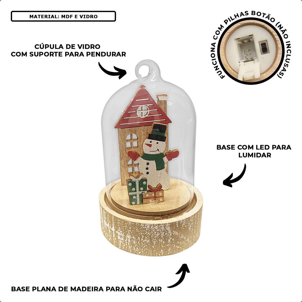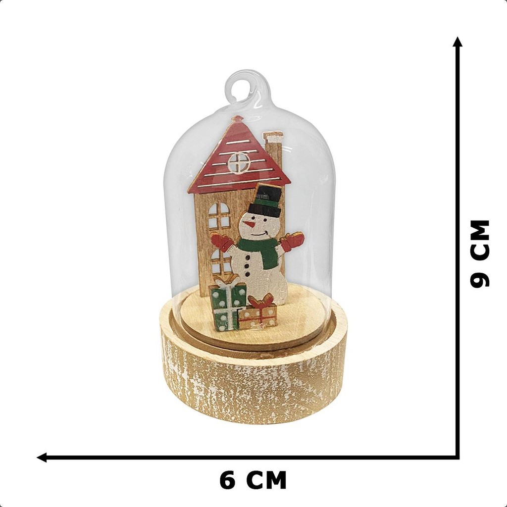Bola pra Arvore de Natal com Led com Papi Noel ou Boneco de Neve Decoração Natalina Cúpula com Base de Madeira