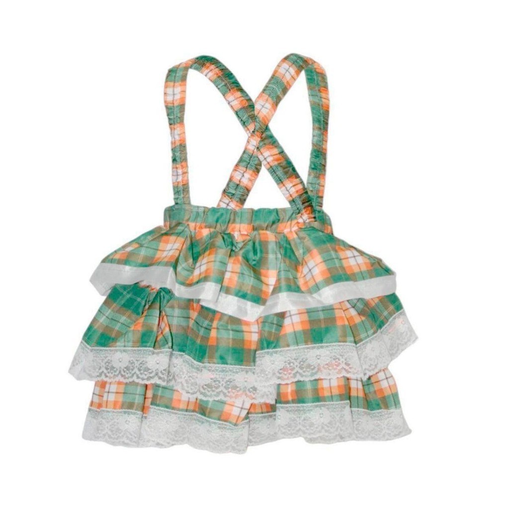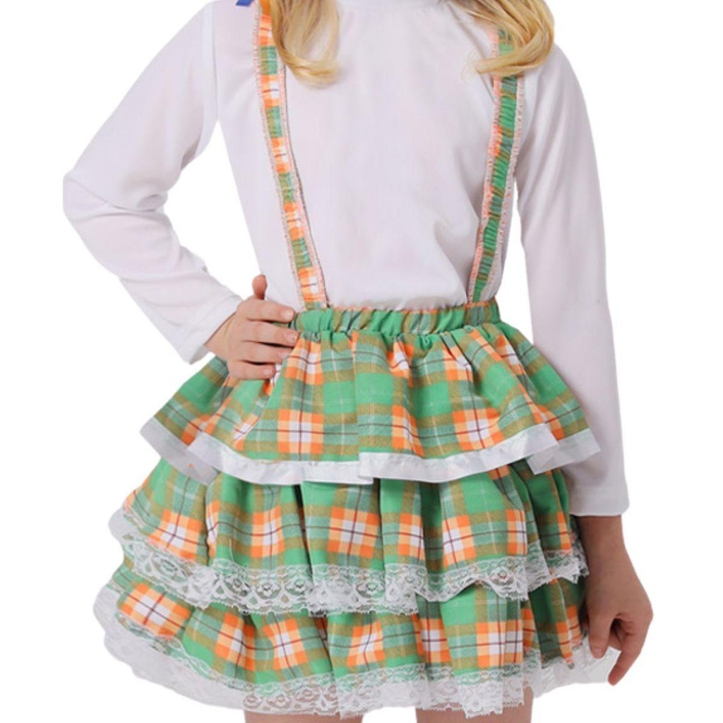 Saia Infantil Festa Junina Xadrez com Suspensório Roupa Menina Salopete Jardineira Dança Quadrilha São João