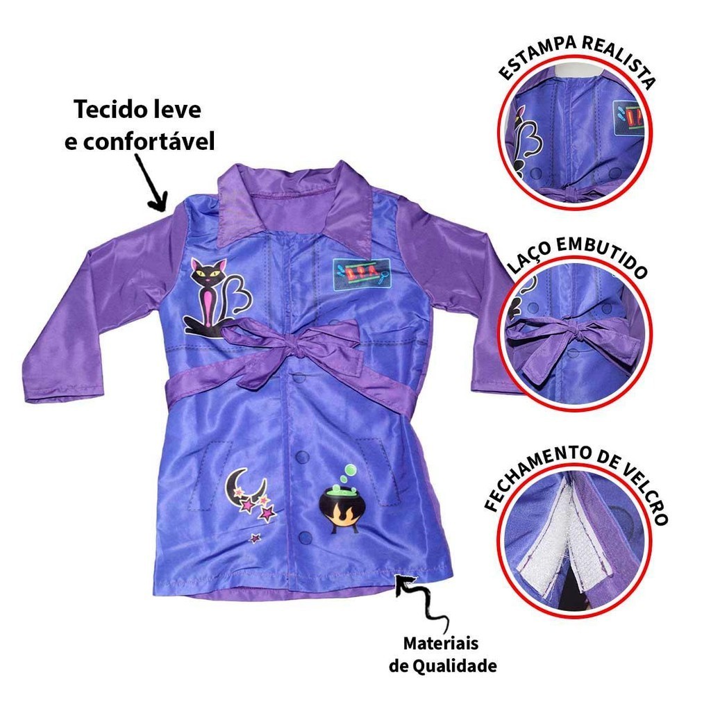 Fantasia Berenice DPA Detetives do Prédio Azul Infantil Jaleco Cor Roxo