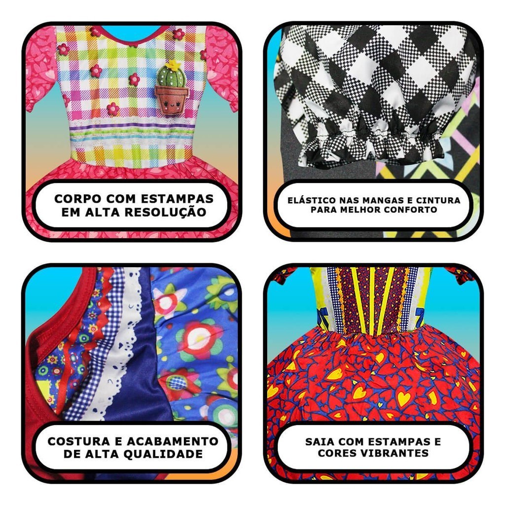 Vestido Festa Junina Infantil Luxo pra Meninas Roupa Caipira Xadrez Quadrilha de Escola