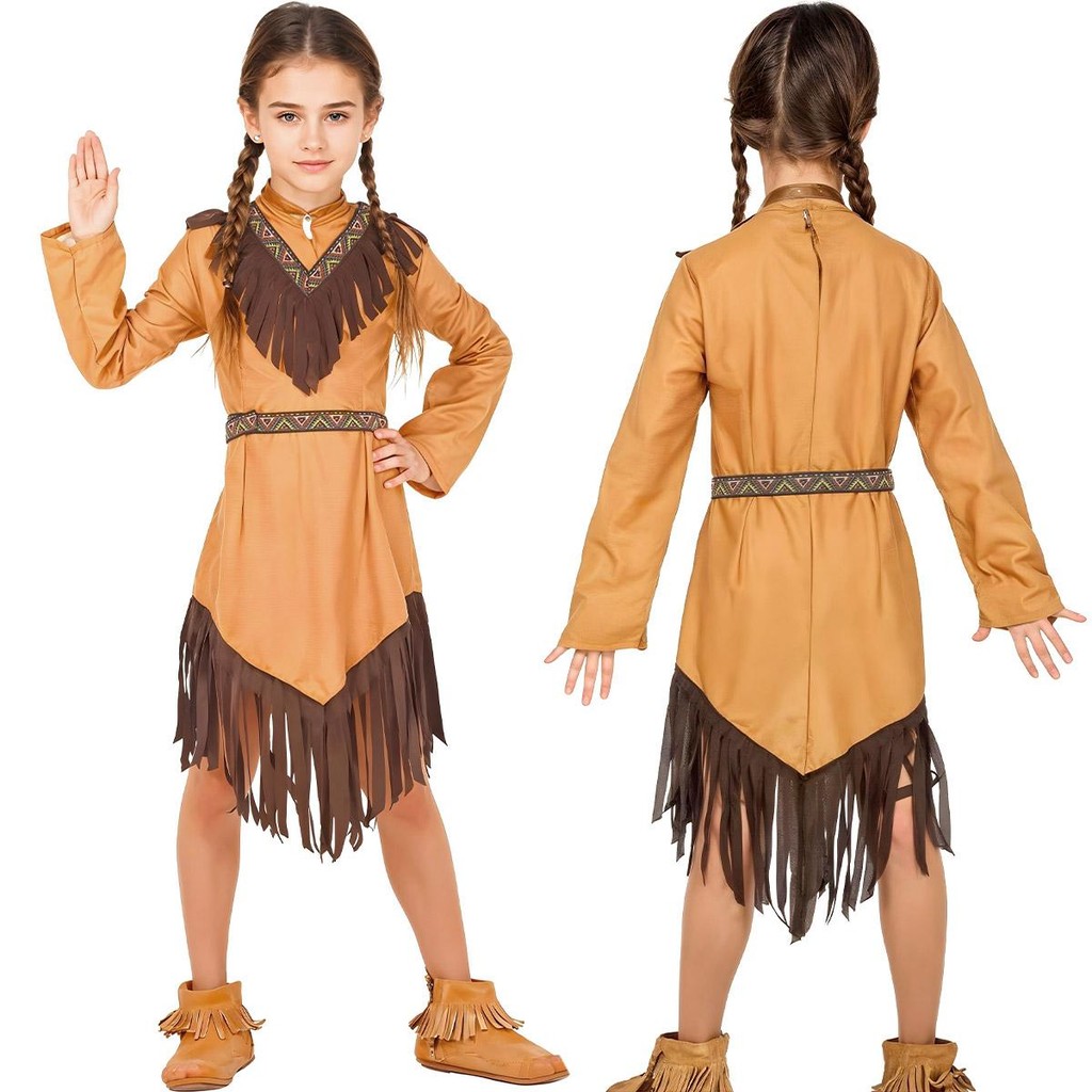 Fantasia Infantil pra Menina de Luxo Festa e Carnaval Vestido de India Americana com Franja