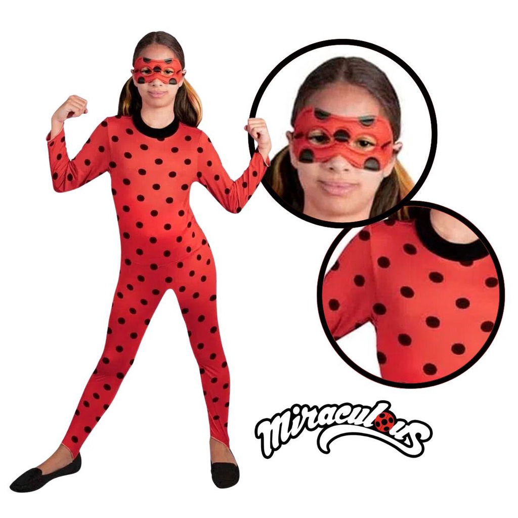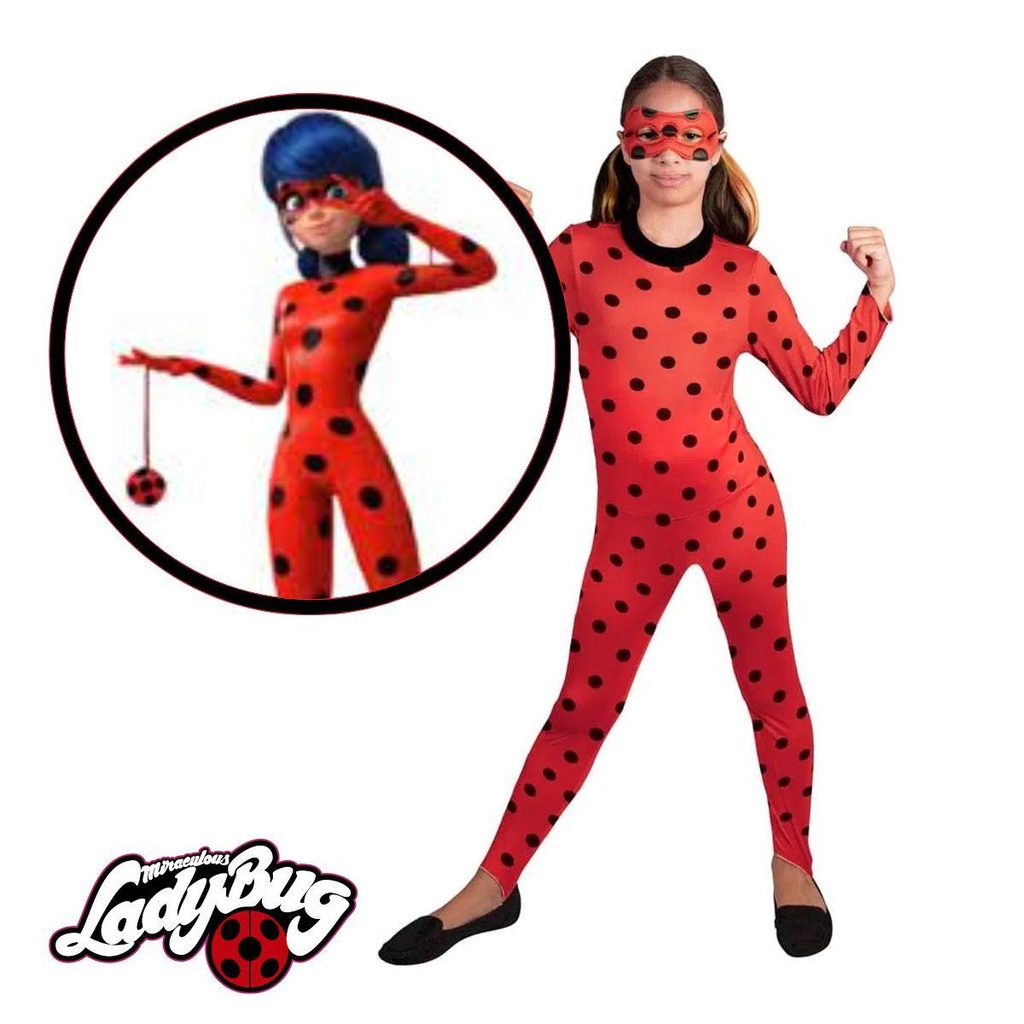 Fantasia Ladybug Infantil Original Miraculous de Luxo Com Máscara e Ioiô