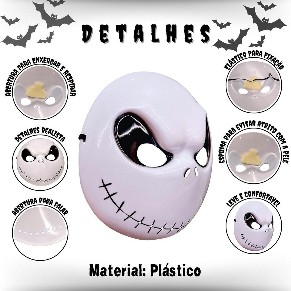 Máscara Halloween Jack Skellington Estranho Mundo de Jack pra Fantasia Cosplay Dia das Bruxas